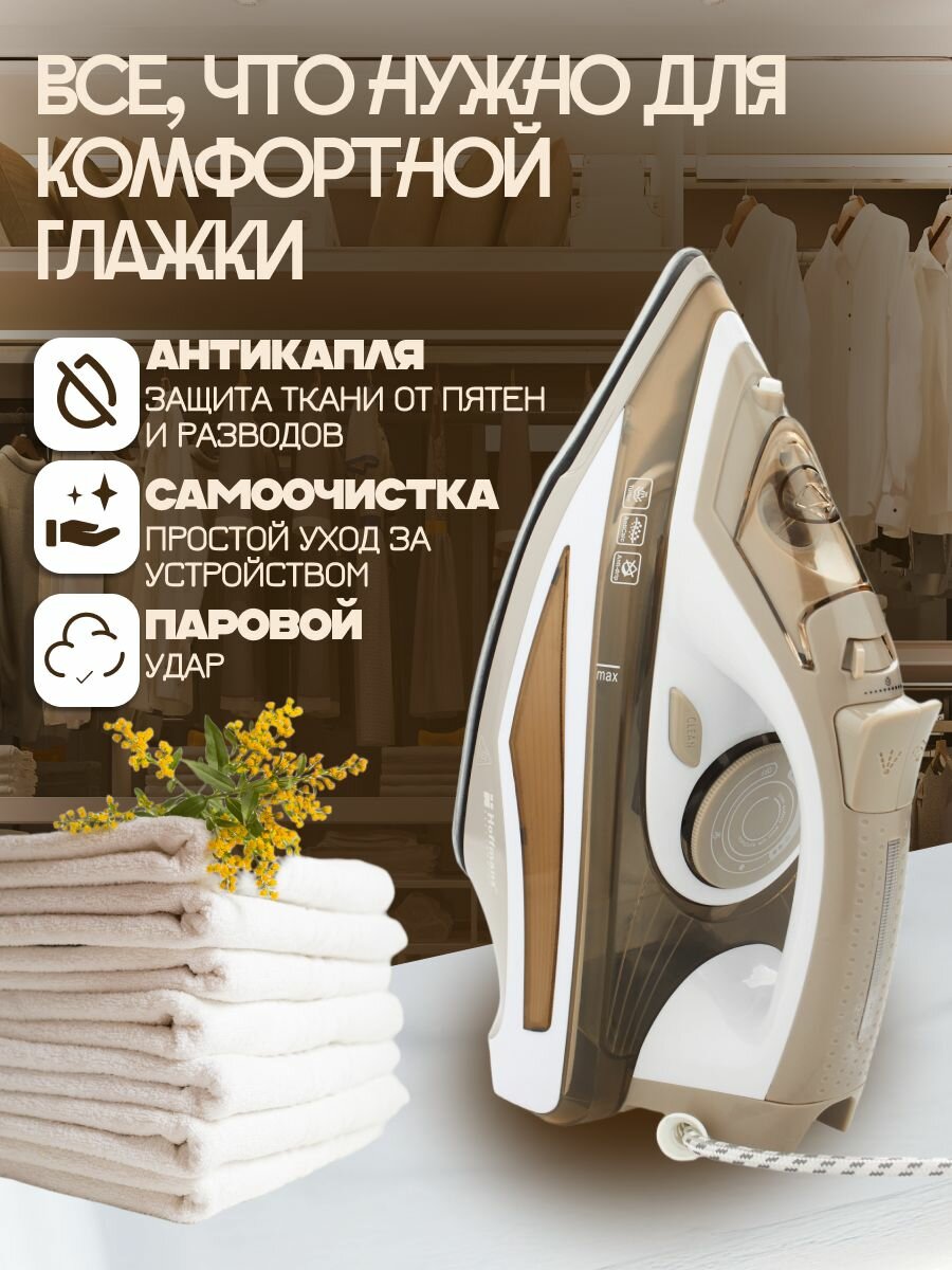 Купить Утюг Hoffmans паровой, с вертикальным отпариванием 2800 Вт с доставкой по всей России.