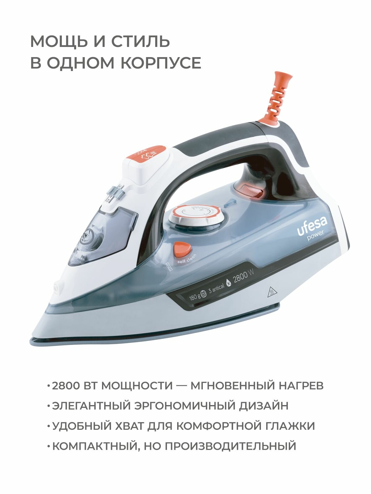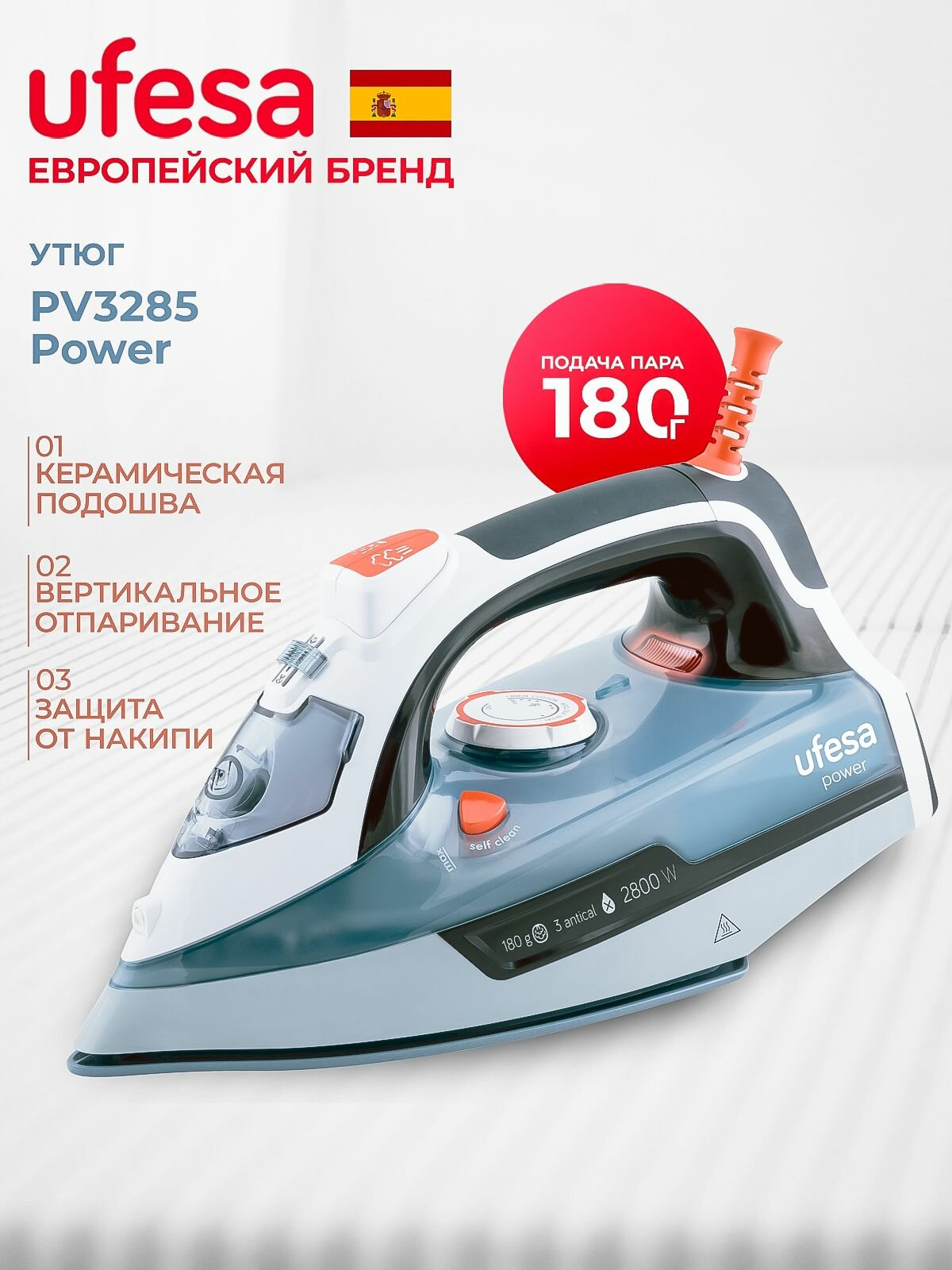 Утюг паровой с антипригарным покрытием UFESA PV3285 Power, вертикальное отпаривание, 2800Вт, паровой удар 180 г/мин.: сравнение цен, характеристики, фото, актуальное наличие и цены.