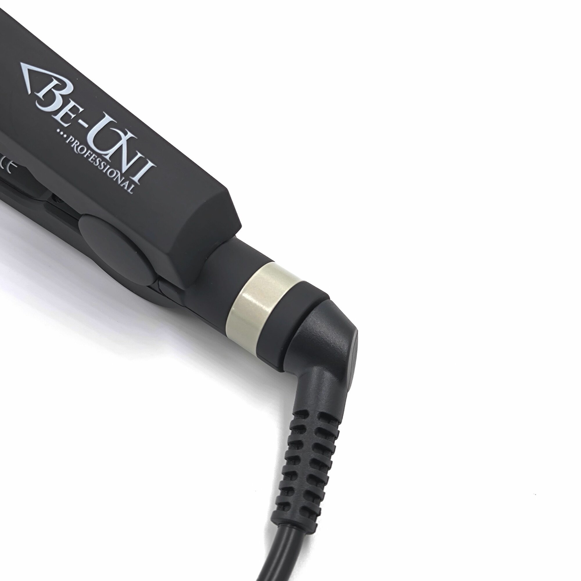 Утюжок Be-Uni Professional V171 Titanium необходим всем девушкам, которые хотят придать своим волосам здоровый и ухоженный вид. Титановое покрытие гарантирует износостойкость, это значит, что утюжок прослужит Вам долго; кроме того, благодаря своему покрытию, утюжок выделяет отрицательные ионы, которые предотвращают электризацию и сухость волос. Также благодаря титану, утюжок нагревается равномерно по всей длине пластины. Еще одним преимуществом инструмента является то, что его могут использовать обладательницы, как здоровых, так и тонких, ослабленных волос. Титан не только бережно относится к вашим волосам, но еще быстро нагревается. Оптимальный размеру пластин (100*40) сокращается время создания укладки. Уникальное покрытие выпрямителя «Soft Touch Pro», напоминающее наощупь резину, устойчиво к повреждениям и не скользит в руке. Корпус плойки легко очищается салфеткой или влажной тканью. Особенность выпрямителя «BE-UNI» — это насадка-расческа, которую можно снимать при необходимости. «Зубчики» расчески начинают пружинить при применении и максимально защищают стержень волос от повреждений. Длина шнура составляет 2,5 метра, а кабель может прокручиваться на 360 С, что позволяет не запутать шнур и комфортно работать с утюжком. Такая длина кабеля позволяет работать с выпрямителем без дополнительных устройств (удлинителей).