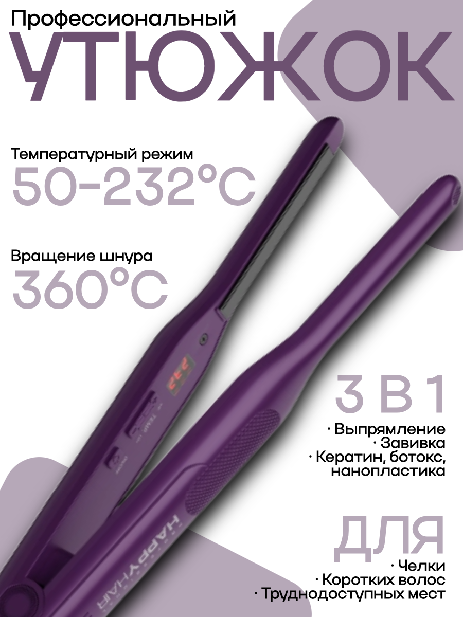 Утюжок для челки Happy Hair титановые пластины Сливовый, Матовый: сравнение цен, характеристики, фото, актуальное наличие и цены.
