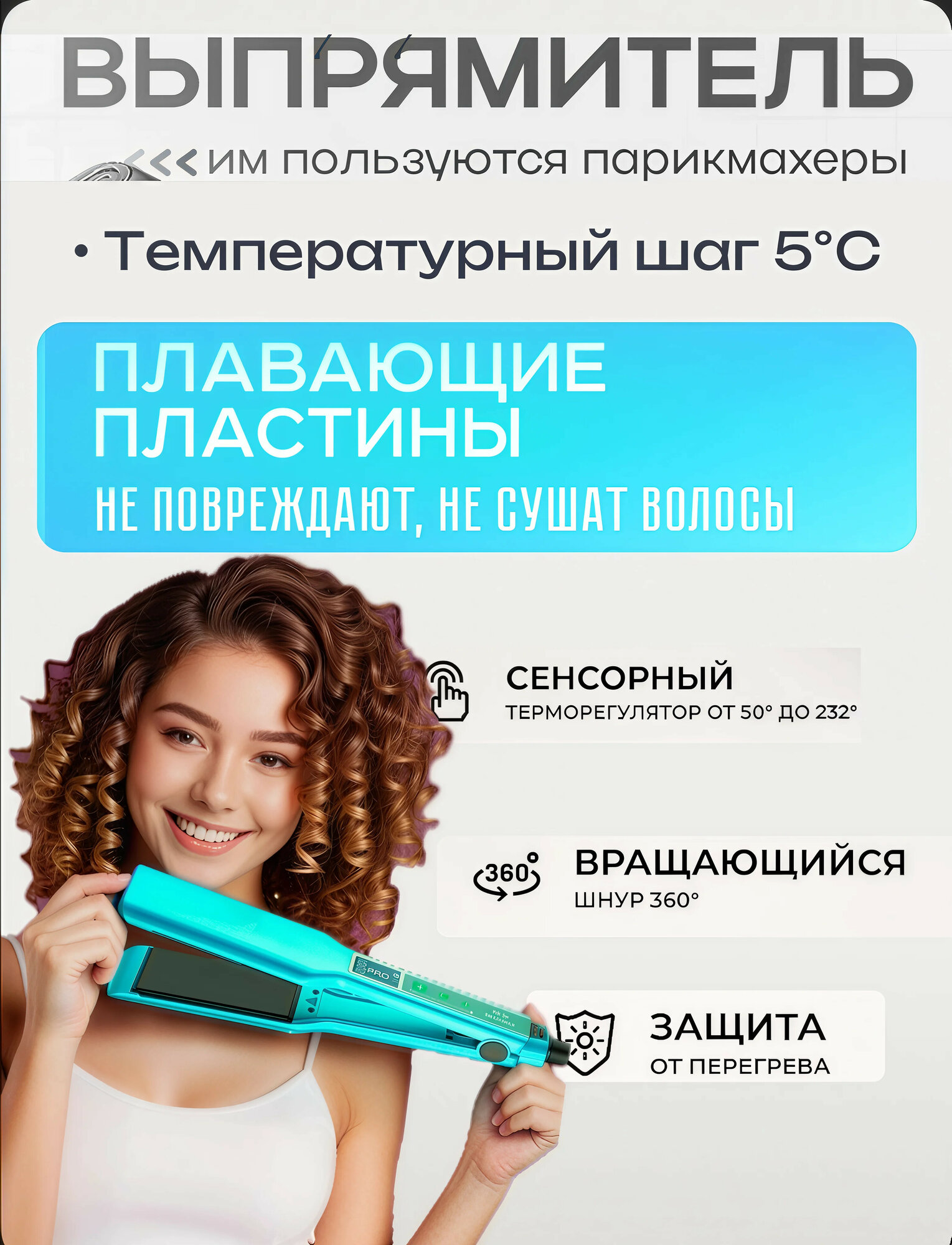 Купить Утюжок для кератина сенсорный Широкие титановые пластины, 232С, Бирюза+ подарок термоперчатка с доставкой по всей России.