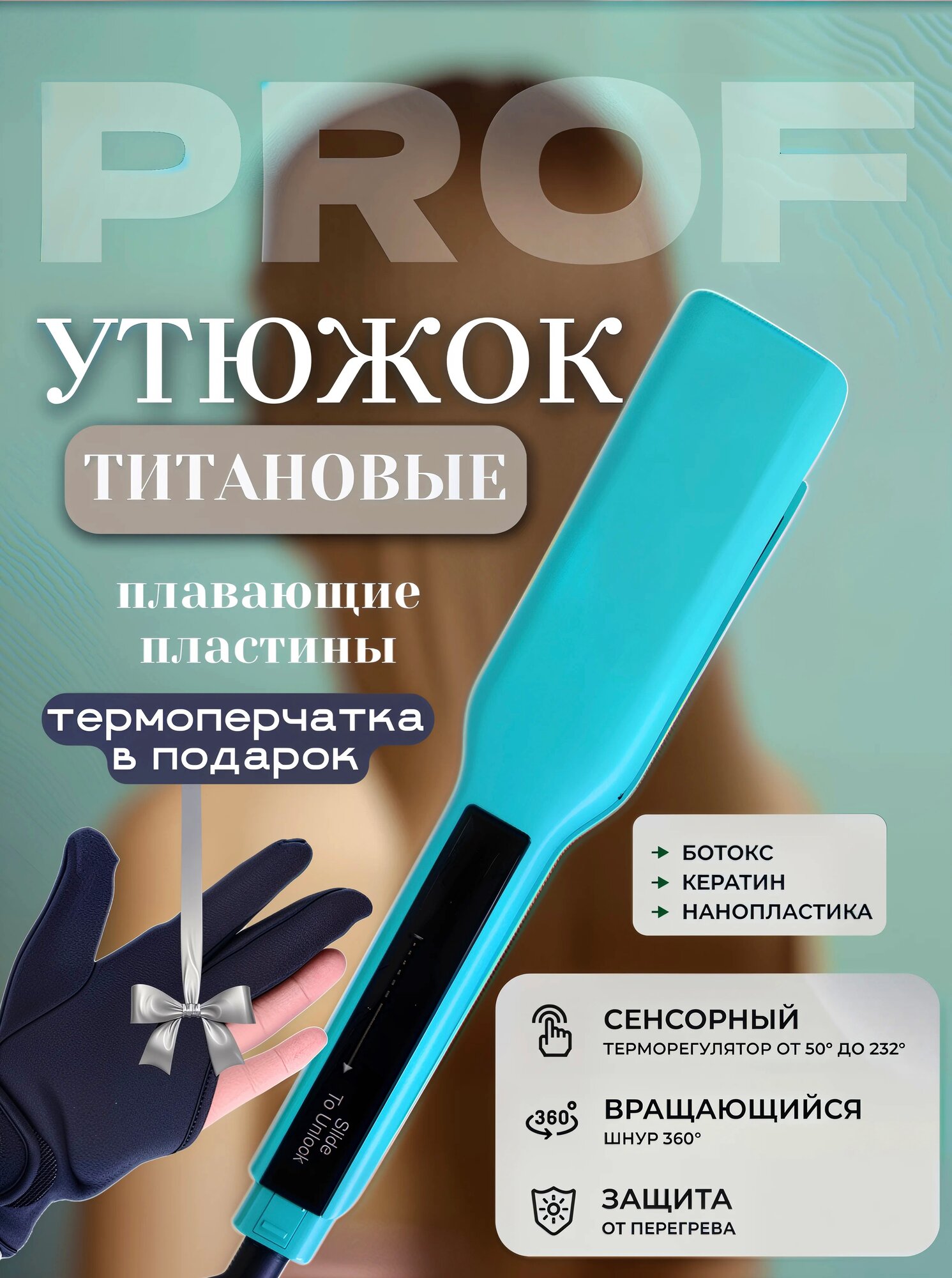 Утюжок для кератина сенсорный Широкие титановые пластины, 232С, Бирюза+ подарок термоперчатка: сравнение цен, характеристики, фото, актуальное наличие и цены.