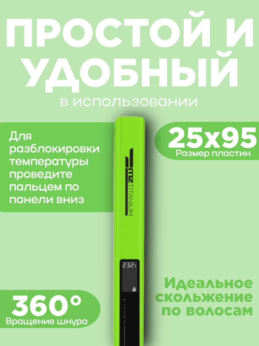 Утюжок Выпрямитель MZ Titanium узкий Matt Green Black матовый зеленый черный титановые плавающие пластины: сравнение цен, характеристики, фото, актуальное наличие и цены.