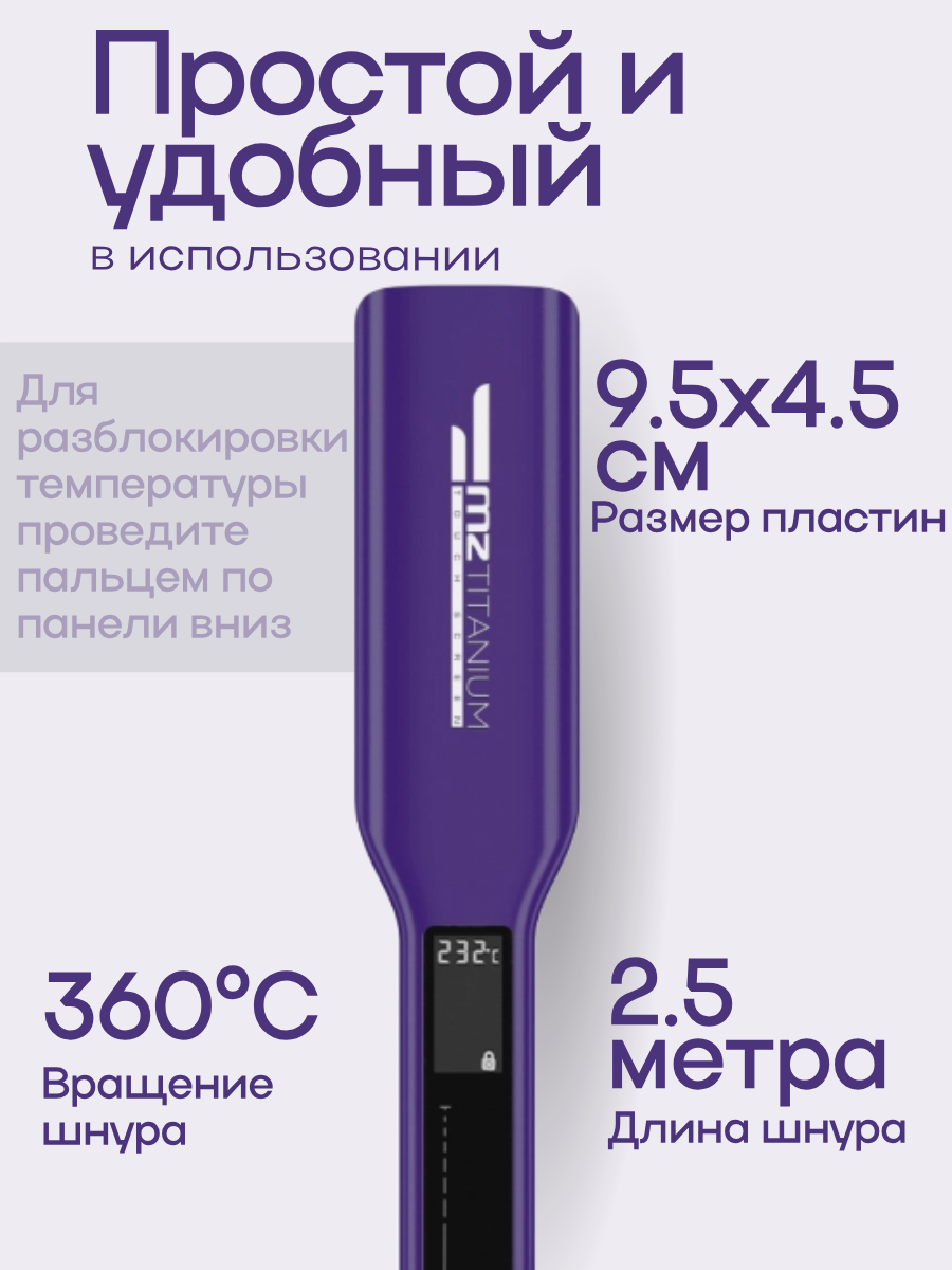 Утюжок Выпрямитель MZ Titanium Matt Violet Black матовый фиолетовый черный титановые плавающие пластины: сравнение цен, характеристики, фото, актуальное наличие и цены.