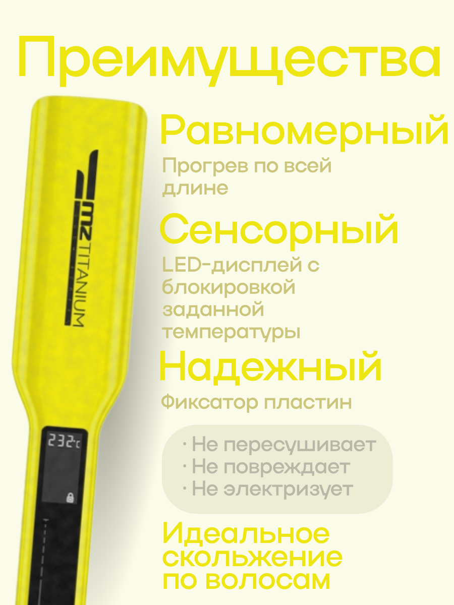 Купить Утюжок Выпрямитель MZ Titanium Matt Yellow Black матовый желтый черный титановые плавающие пластины с доставкой по всей России. Утюжок Выпрямитель MZ Titanium Matt Yellow Black матовый желтый черный титановые плавающие пластины: сравнение цен, характеристики, фото, актуальное наличие и цены.