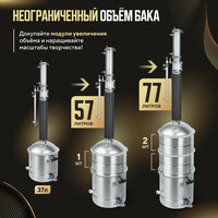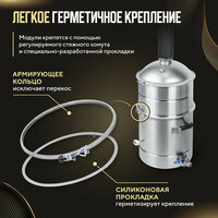 | Дополнительная информация | Увеличитель куба Люкссталь (Luxstahl) / Модуль для увеличения перегонного куба на 20 л с армированным уплотнением , разметка, регулируемый хомут |