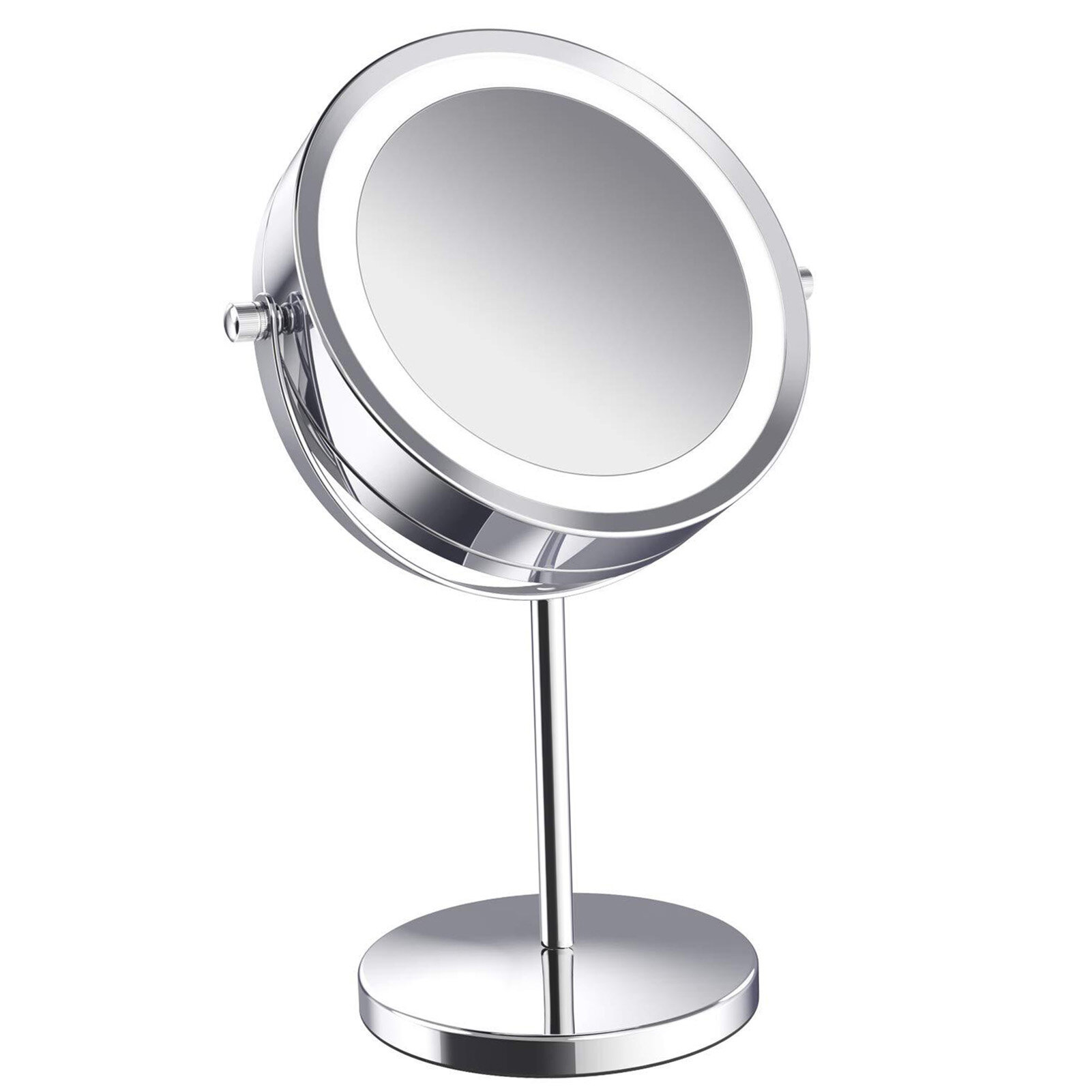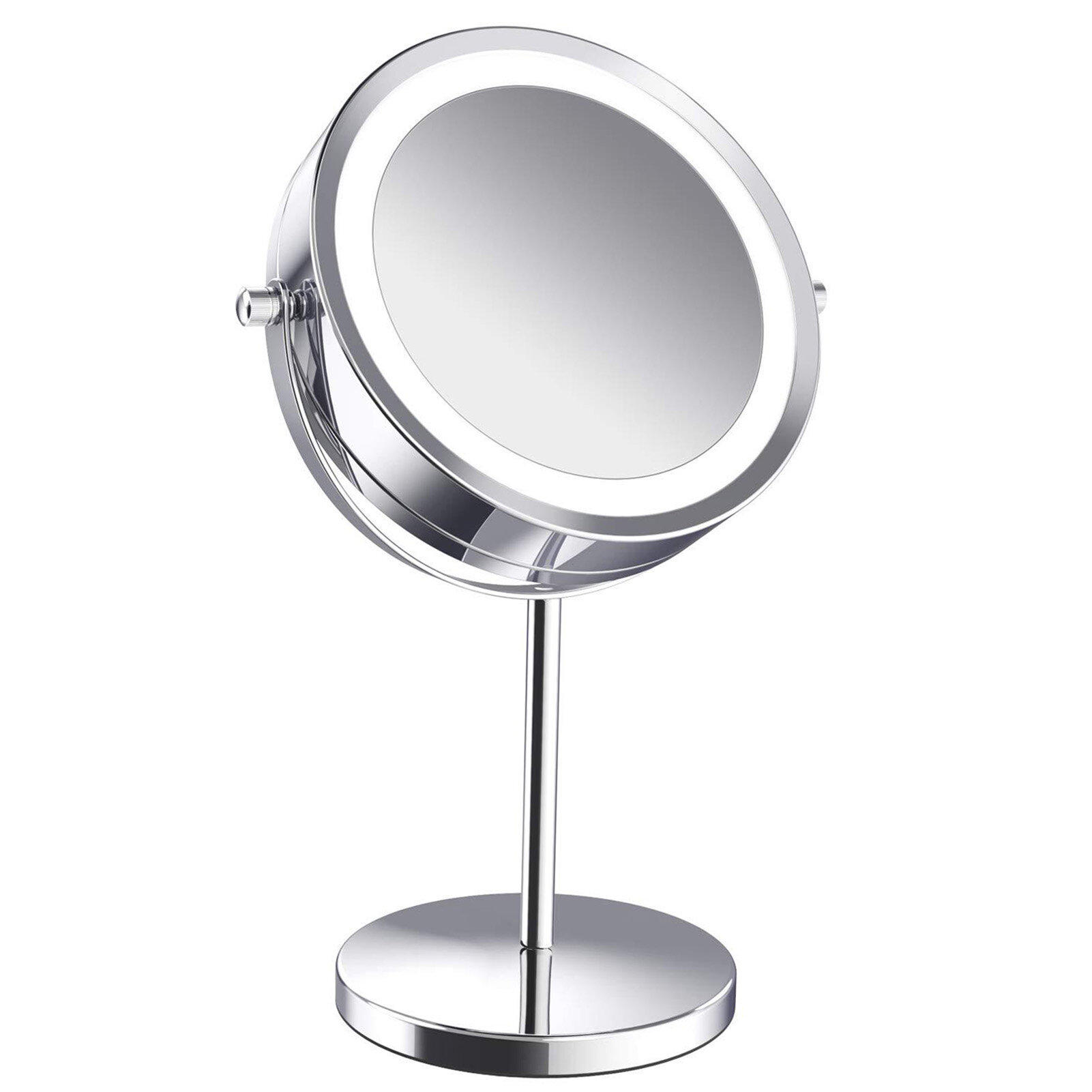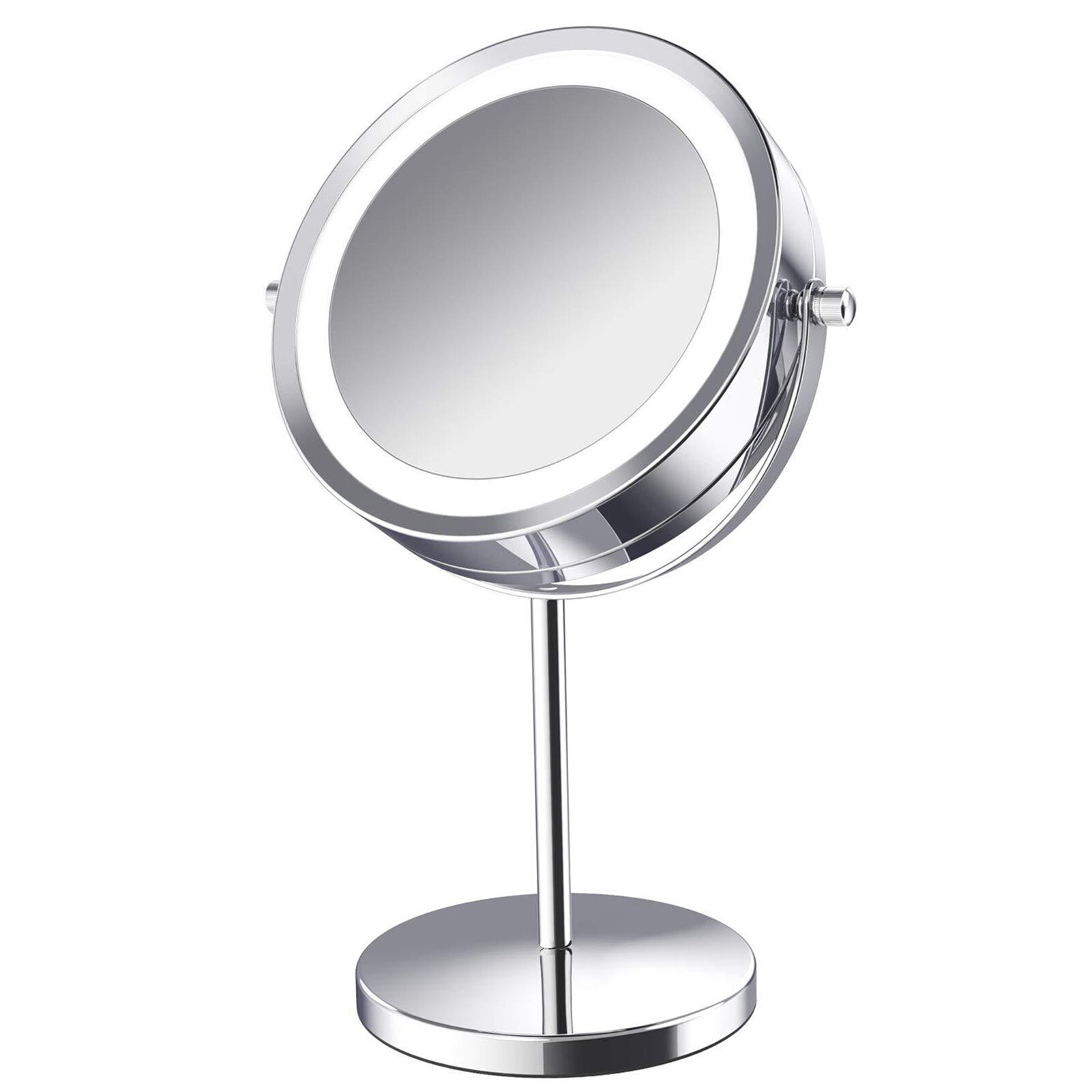 Увеличительное зеркало для макияжа со светодиодной подсветкой, двустороннее 5-кратное увеличение, вращение на 360 градусов, косметическое зеркало нормального типа