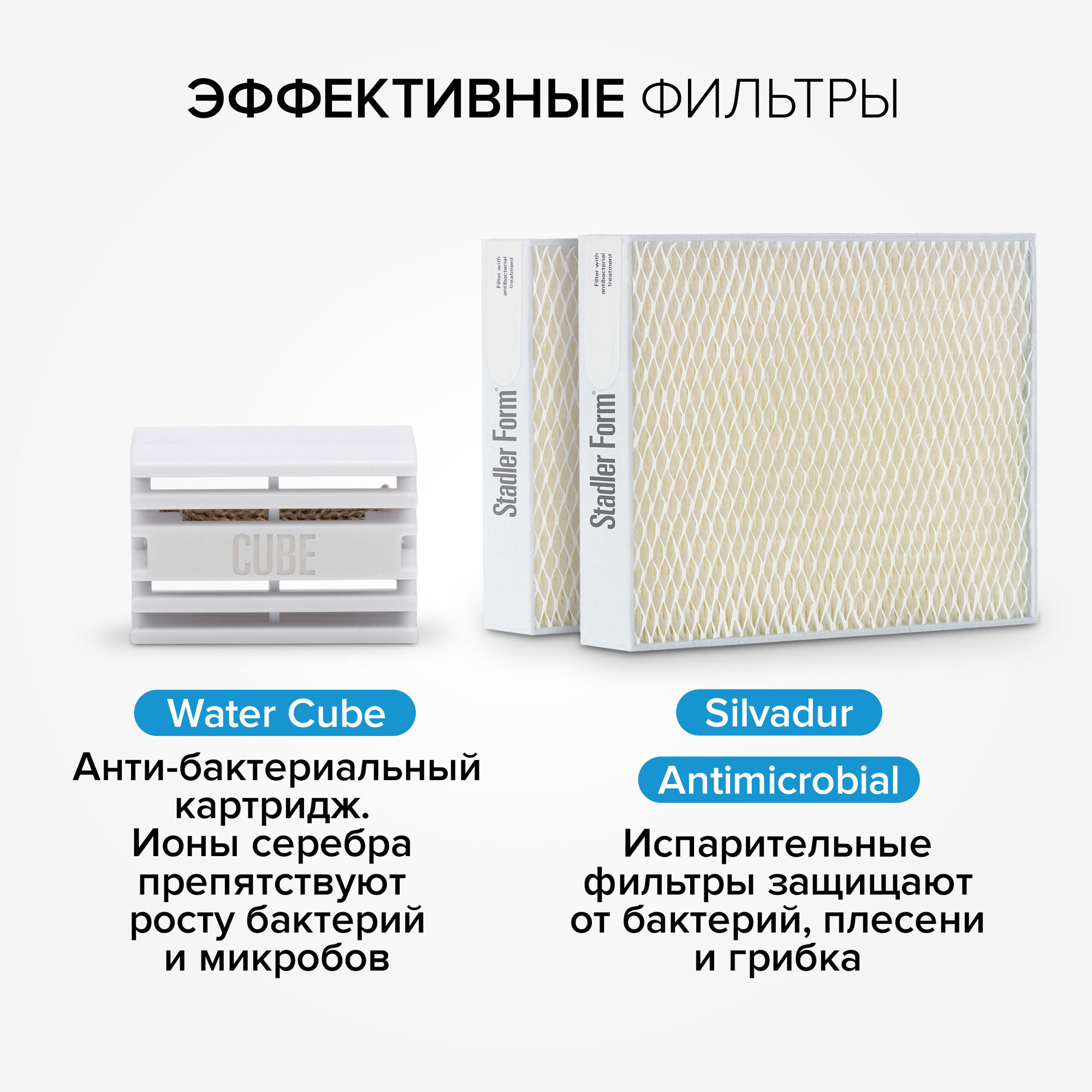 увлажнитель воздуха, антибактериальный картридж Water Cube™ – 1 шт, экологичные целлюлозные фильтры – 2 шт