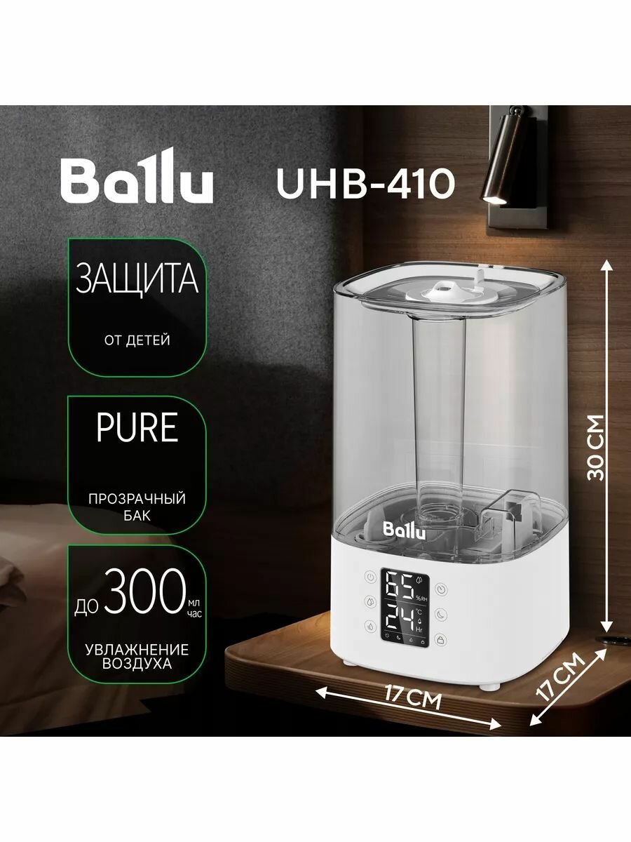 Увлажнитель воздуха «Ballu» UHB-410, ультразвуковой, с ароматизацией, белый: сравнение цен, характеристики, фото, актуальное наличие и цены.