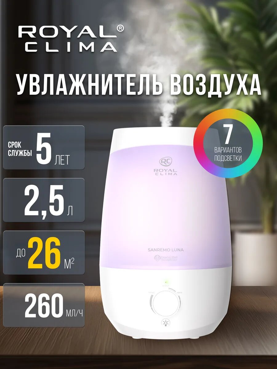 Увлажнитель воздуха для дома напольный ROYAL CLIMA SANREMO Luna, RUH-SL260/2.5M-WT, белый: сравнение цен, характеристики, фото, актуальное наличие и цены.
