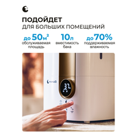 Быстро наполнит влагой воздух в вашем доме. Оснащен баком на 10 л и UV-лампой для очистки воды.