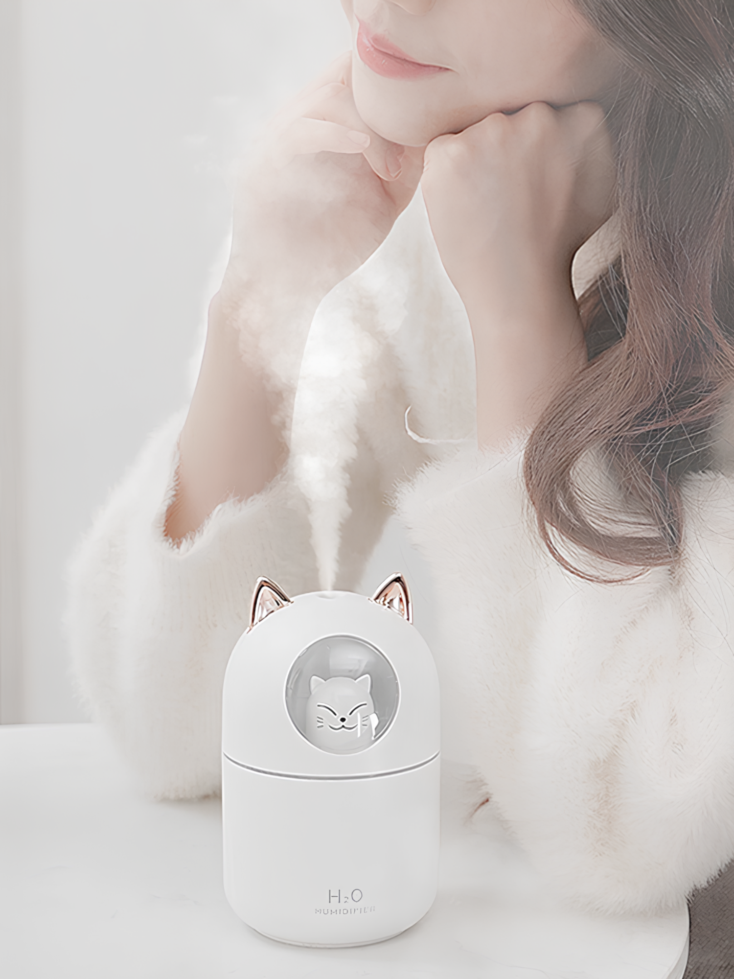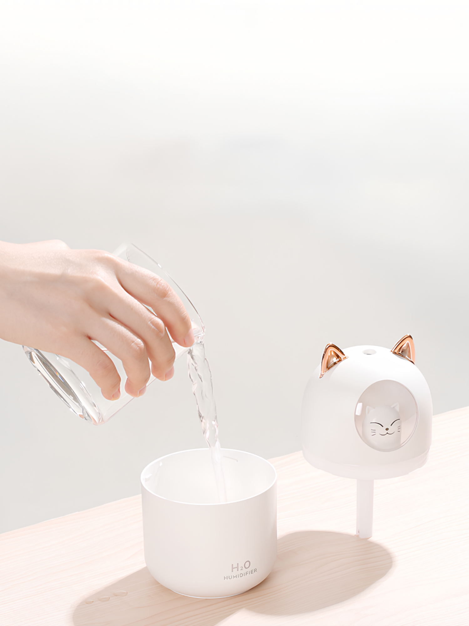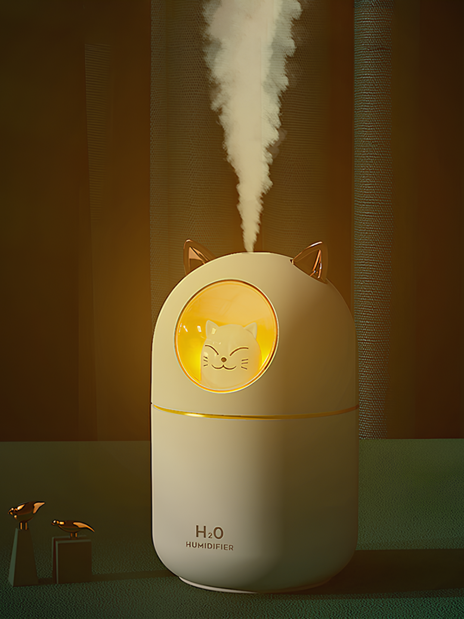 Купить Увлажнитель воздуха ночник с подсветкой HiKitty H2O, очиститель воздуха для квартиры, милый дизайн, с котиком, белый с доставкой по всей России.