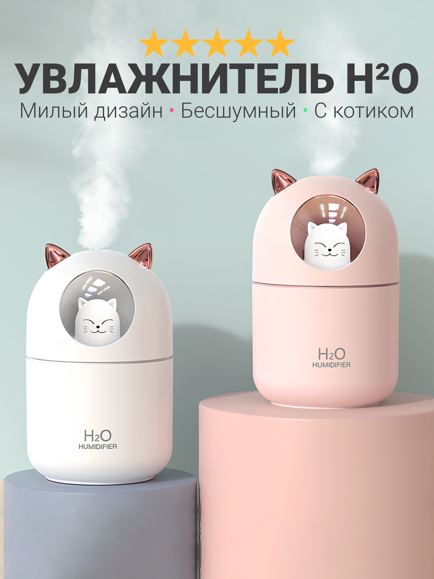 Увлажнитель воздуха ночник с подсветкой HiKitty H2O, очиститель воздуха для квартиры, милый дизайн, с котиком, белый: сравнение цен, характеристики, фото, актуальное наличие и цены.