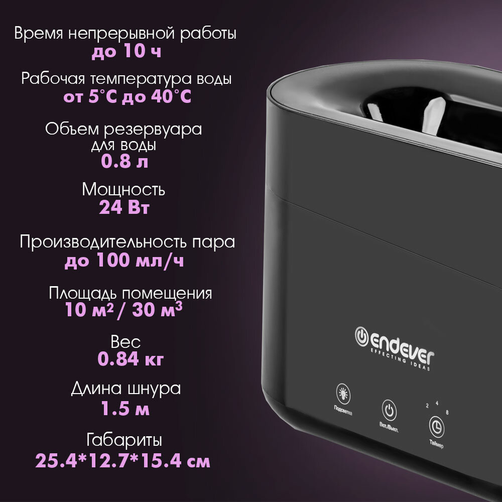 Увлажнитель воздуха ультразвуковой для дома ENDEVER OASIS-240, 24 Вт, до 10 м², ночник: сравнение цен, характеристики, фото, актуальное наличие и цены.