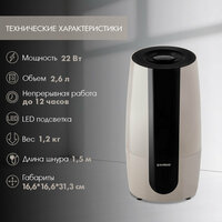 | Дополнительная информация | время непрерывной работы: до 12 часов, долив воды сверху, сенсорное управление, автовыключение при нехватке воды и при снятии резервуара для воды |