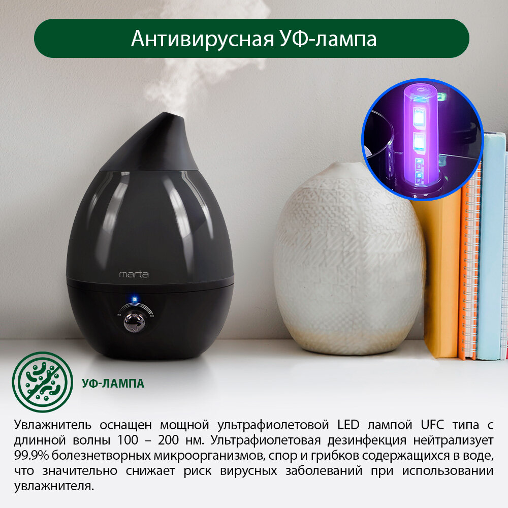 Увлажнитель воздуха ультразвуковой MARTA MT-2370 антивирусная УФ — лампа темный агат: сравнение цен, характеристики, фото, актуальное наличие и цены.