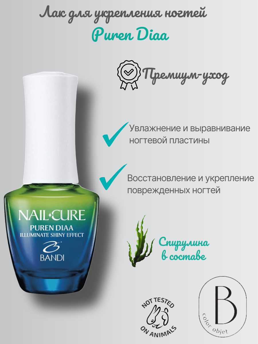 Увлажняющее, выравнивающее покрытие для ногтей BANDI Nail cure puren diaa,14 мл: сравнение цен, характеристики, фото, актуальное наличие и цены.