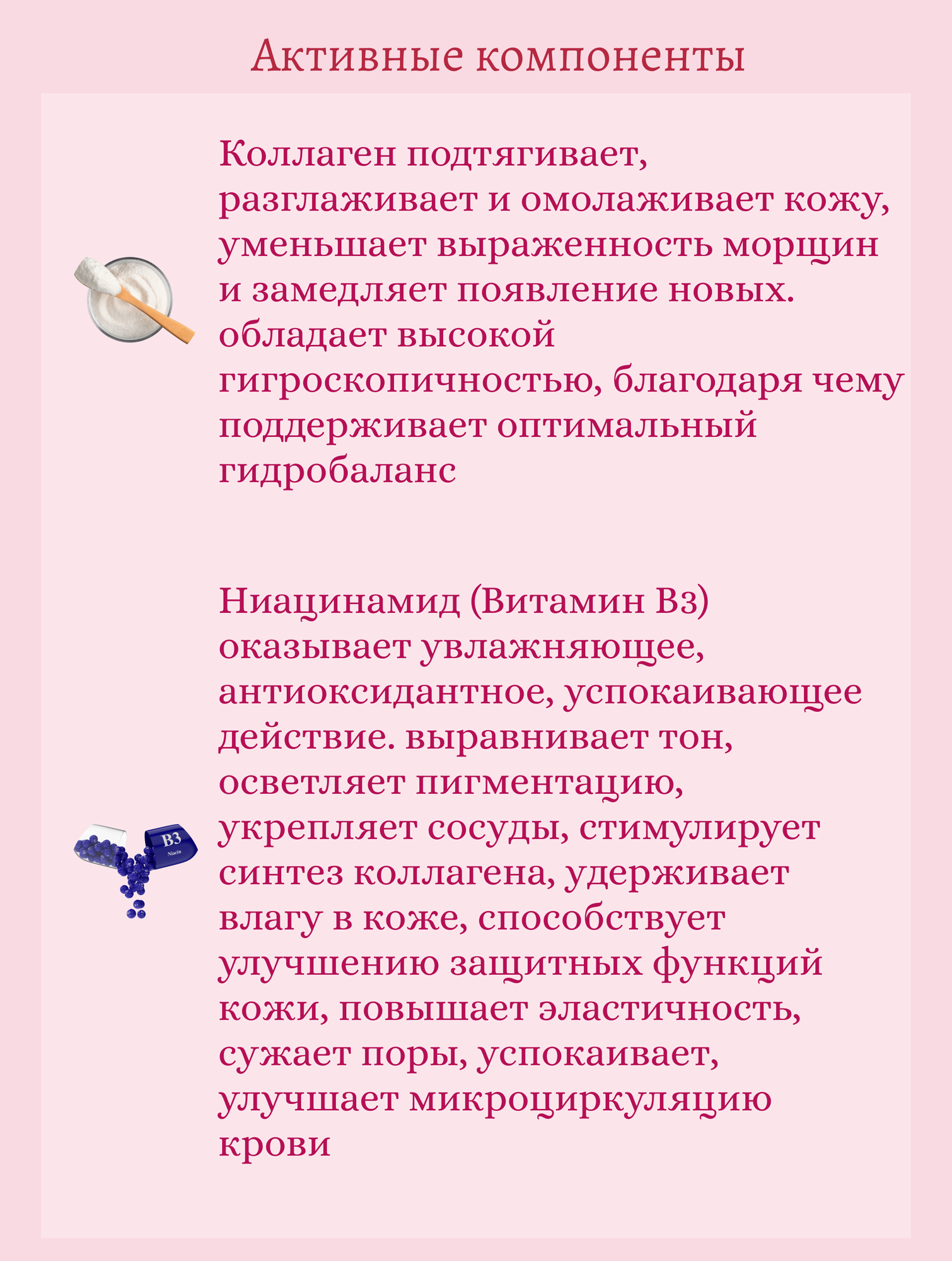 восстановление, выравнивание микрорельефа, лифтинг, омоложение, отбеливание, повышение упругости, против акне, снятие воспалений, снятие отеков, сужение пор, тонизирование, увлажнение, улучшение цвета, успокаивающий