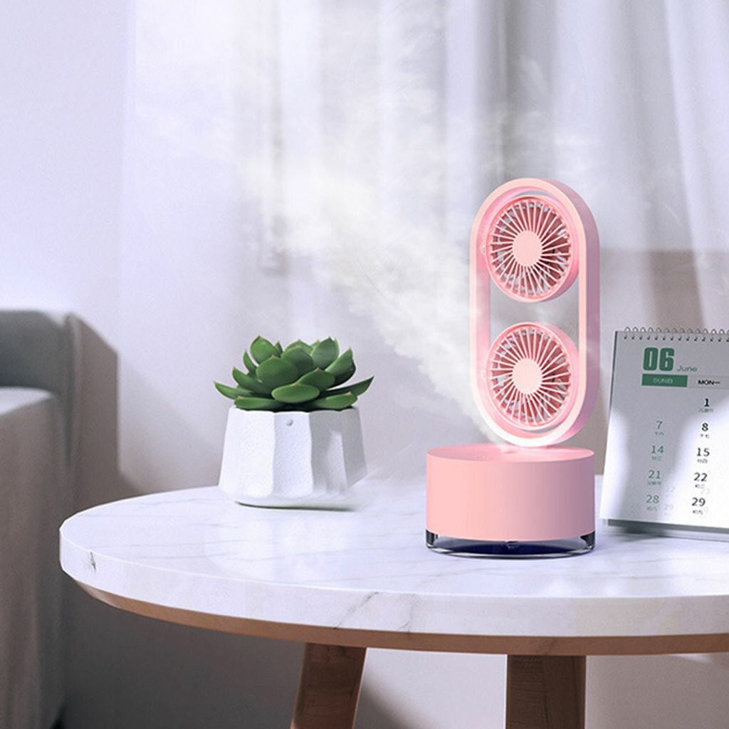 Увлажняющий спрей с двуглавым вентилятором для настольной USB-зарядки-розовый: сравнение цен, характеристики, фото, актуальное наличие и цены.