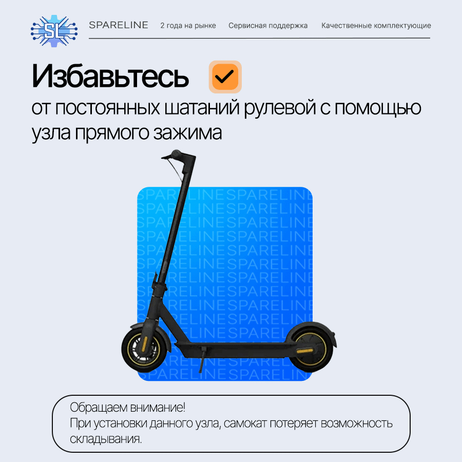 Узел прямого зажима механизма складывания от бренда SPARELINE предназначен для электросамокатов: