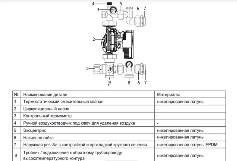 | Комплектация | Насосно-смесительный узел и циркуляционный насос |