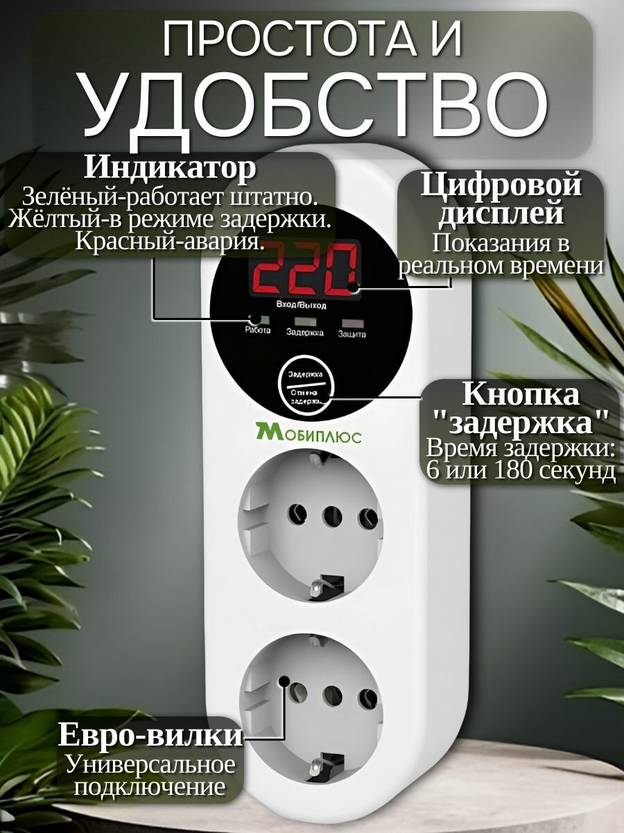 Купить УЗИП. Устройство защиты от импульсных перенапряжений/реле напряжения в розетку с доставкой по всей России.