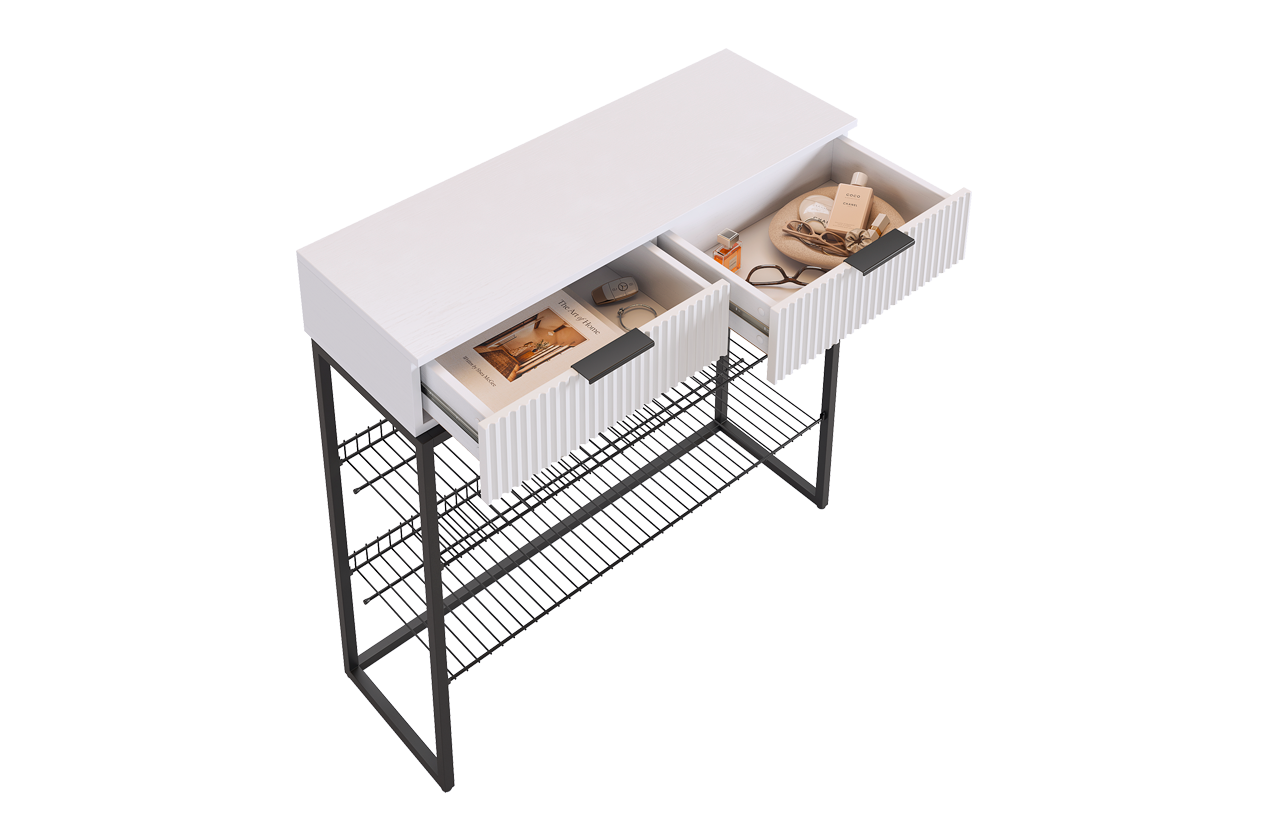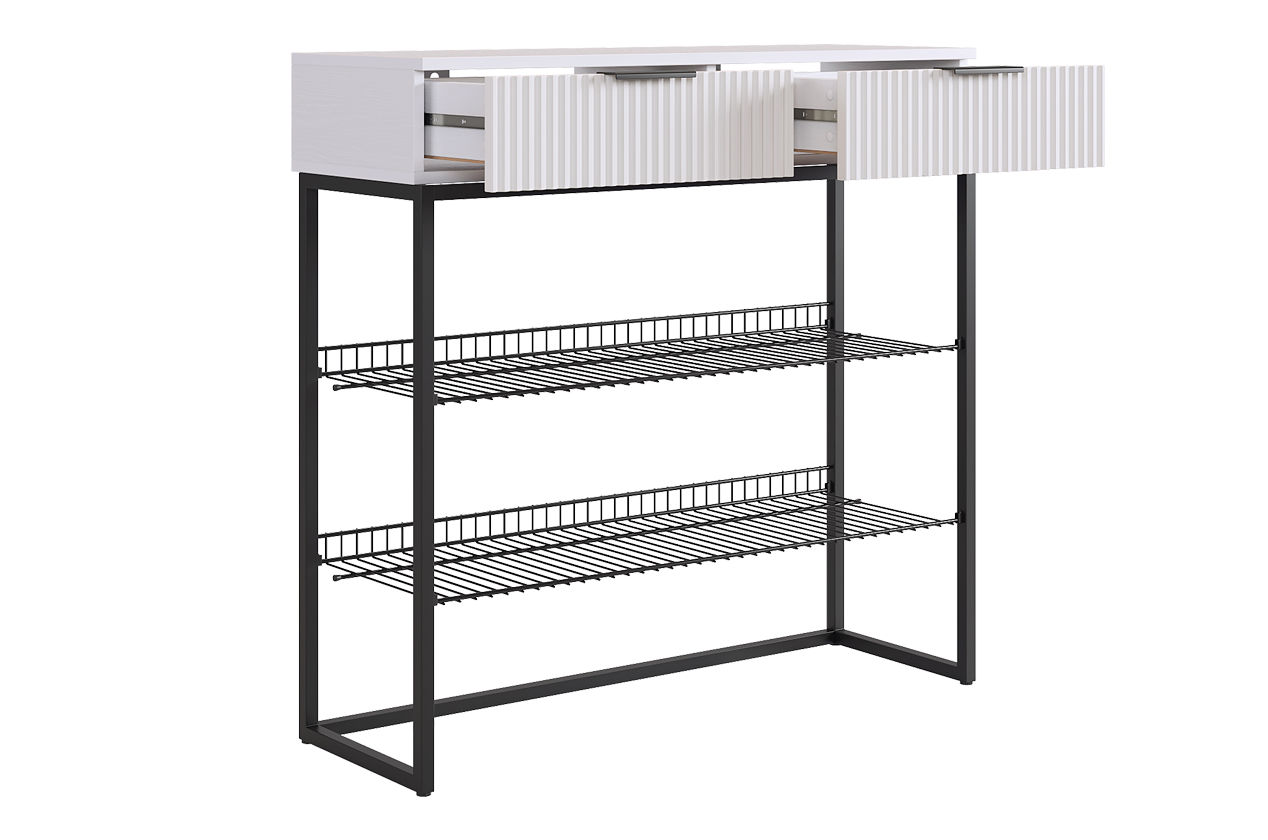 Обувница с двумя выдвижными ящиками и двумя полками для обуви