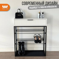 Узкая обувница в прихожую «Вельвет», с ящиком, цвет Белое дерево/черный муар, Mebelson: сравнение цен, характеристики, фото, актуальное наличие и цены.