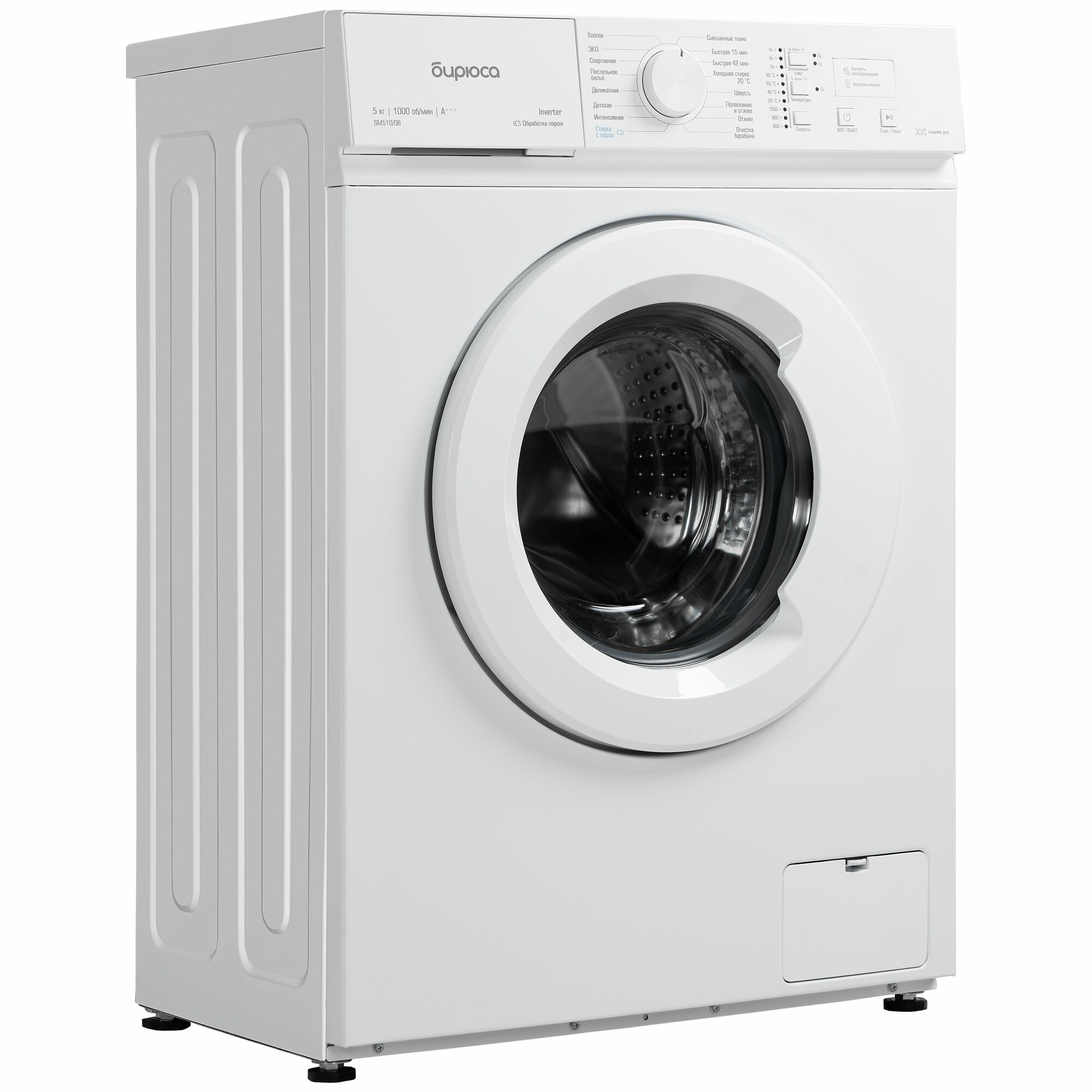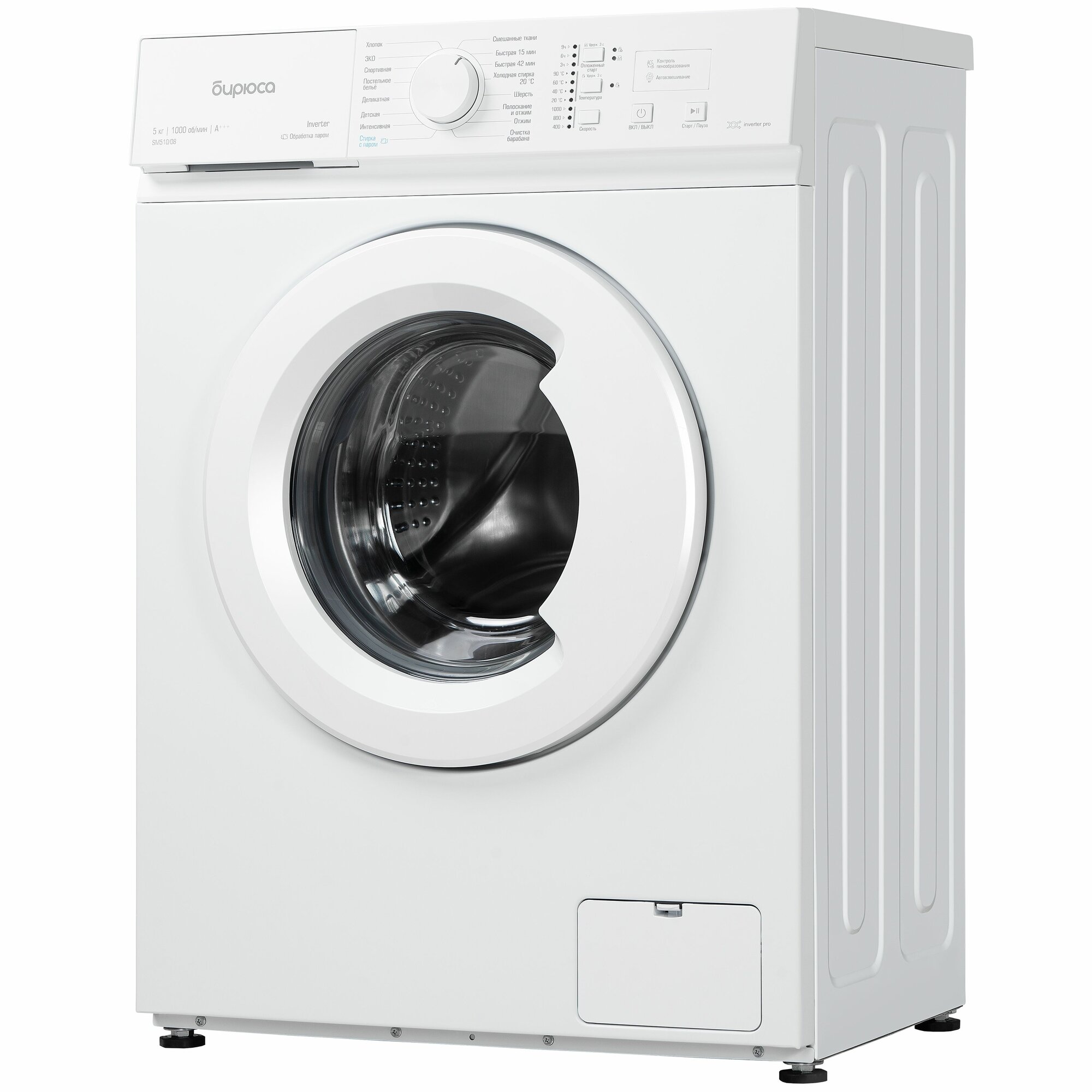 Купить Узкая стиральная машина Бирюса WM-SM510/08, Inverter, 5 кг с паром, контроль пенообразования, автовзвешивание, самоочистка, белый с доставкой по всей России.