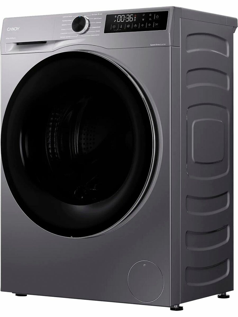 Купить Узкая стиральная машина с сушкой Candy NOVA C43D 485MBBR-07, загрузка 8/5 кг, 12 программ, 1400 об/мин, инверторный мотор, отсрочка старта, серебро с доставкой по всей России.