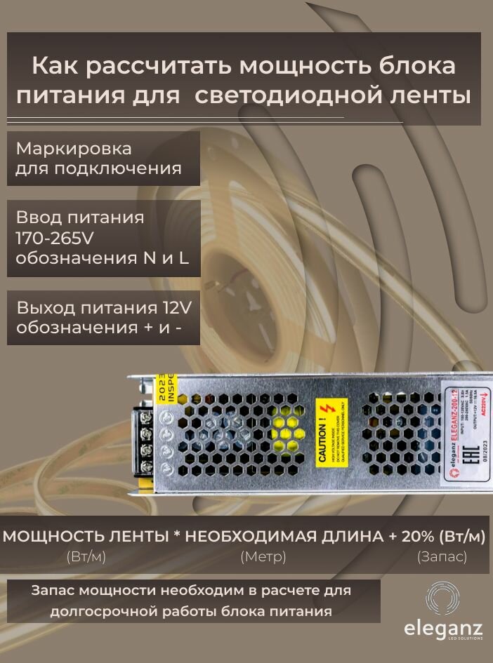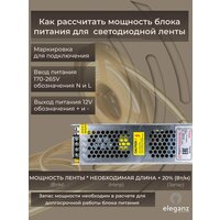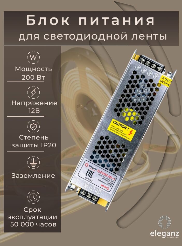 Блок питания для светодиодной ленты 12V «Eleganz 200W», IP20 1шт.: сравнение цен, характеристики, фото, актуальное наличие и цены.