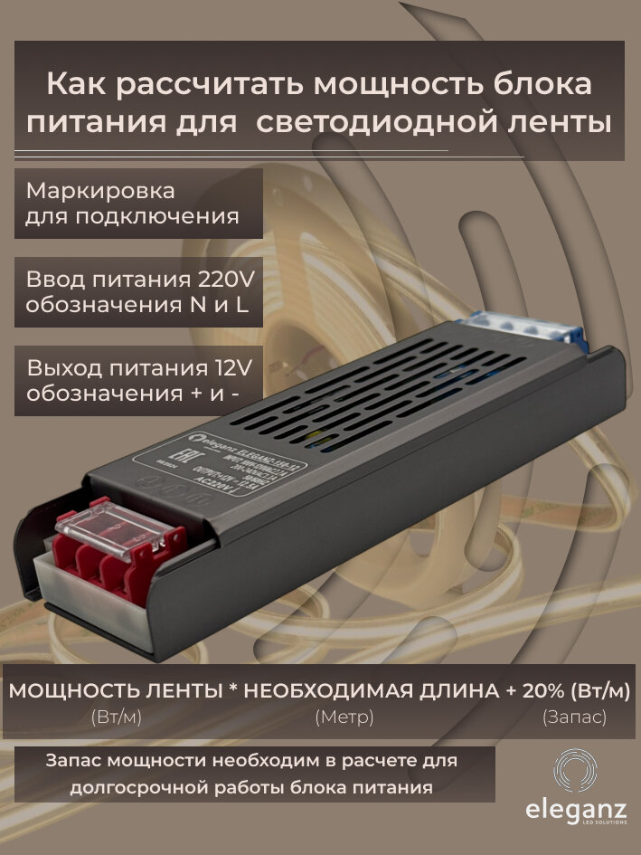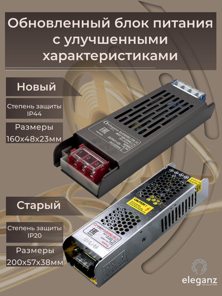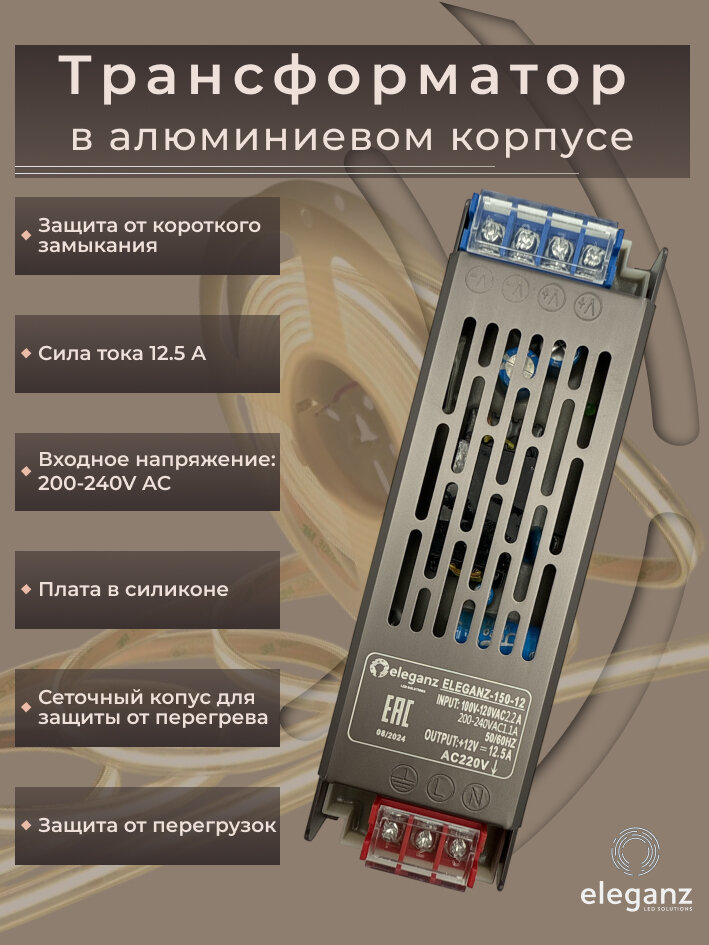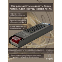 Узкий блок питания/трансформатор «Eleganz 150Вт» для светодиодной ленты 12В IP44: сравнение цен, характеристики, фото, актуальное наличие и цены.