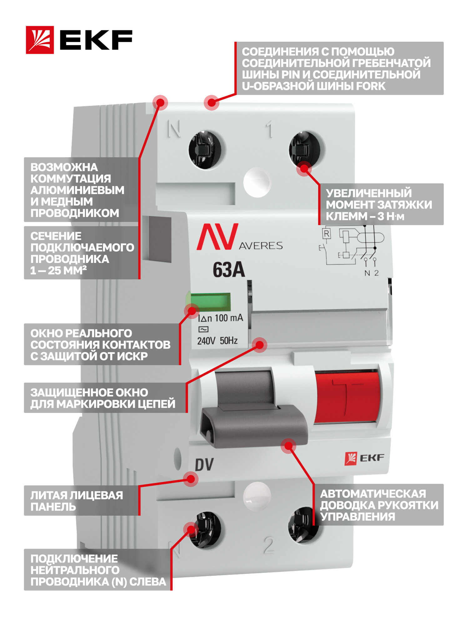 УЗО 63А 100мА тип AC EKF AVERES DV, электромеханическое, двухполюсное 2P, 10кА — устройство защитного отключения: сравнение цен, характеристики, фото, актуальное наличие и цены.