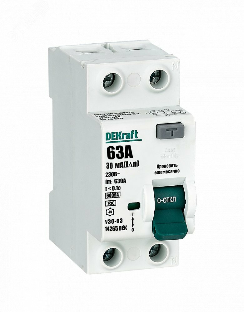Выключатель дифференциального тока Dekraft УЗО-03 двухполюсный 63А 30мА 6кА тип A 14265DEK: сравнение цен, характеристики, фото, актуальное наличие и цены.