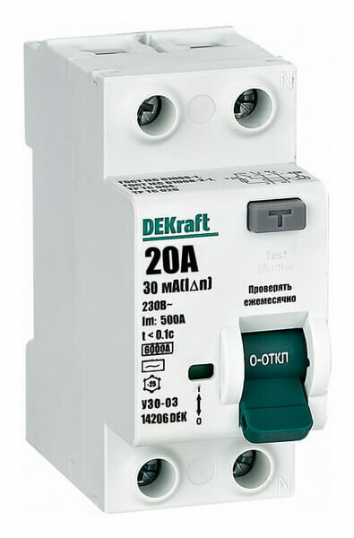 Купить ВДТ DEKraft серии УЗО-03 2P 20A 30mA тип AC 6kA с доставкой по всей России.