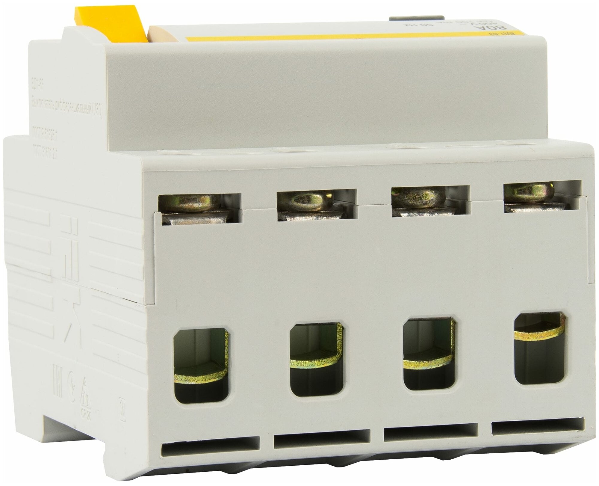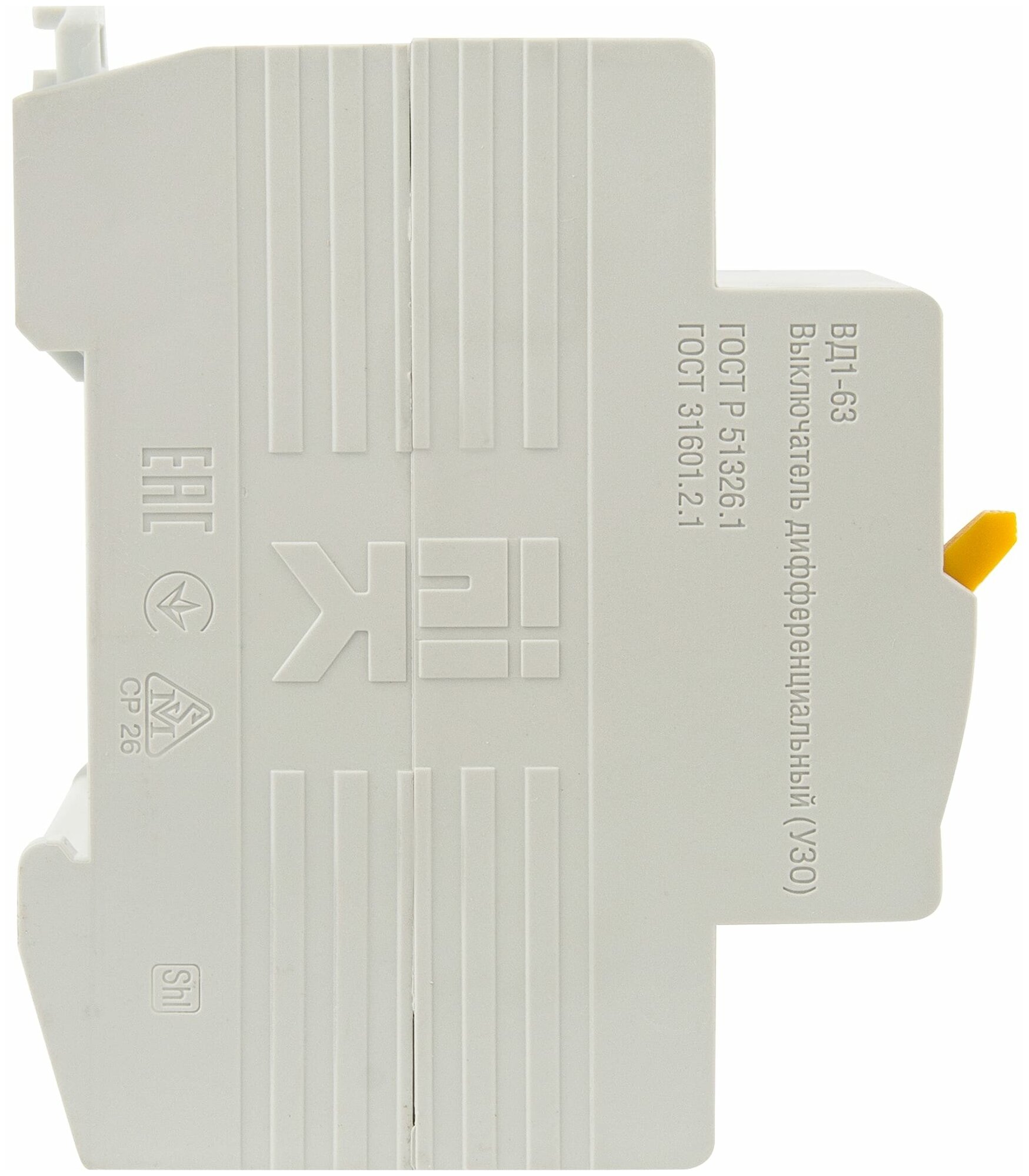 Быстродействующий защитный выключатель, реагирующий на дифференциальный ток, без встроенной защиты от сверхтоков. Предназначен для защиты человека от поражения электрическим током при случайном непреднамеренном прикосновении к токоведущим частям электроустановок и предотвращает возникновение пожаров вследствие протекания токов утечки на землю. Не имеет собственного потребления электроэнергии и обладает высокой механической износостойкостью. Электромеханическая схема без электронных компонентов. Наиболее надежная защита человека при прямом прикосновении к токоведущим частям. Независимый индикатор положения контактов. Широкий диапазон рабочих температур от -25°С до +50°С. Не имеет собственного потребления электроэнергии и сохраняет работоспособность при обрыве нулевого проводника. Насечки на контактных зажимах снижают тепловые потери и увеличивают механическую устойчивость соединения. Наличие кнопки тест для проверки работоспособности устройства и правильности подключения. Быстрый монтаж с помощью защелки с двойным фиксированным положением. Условный ток короткого замыкания 4,5кА.