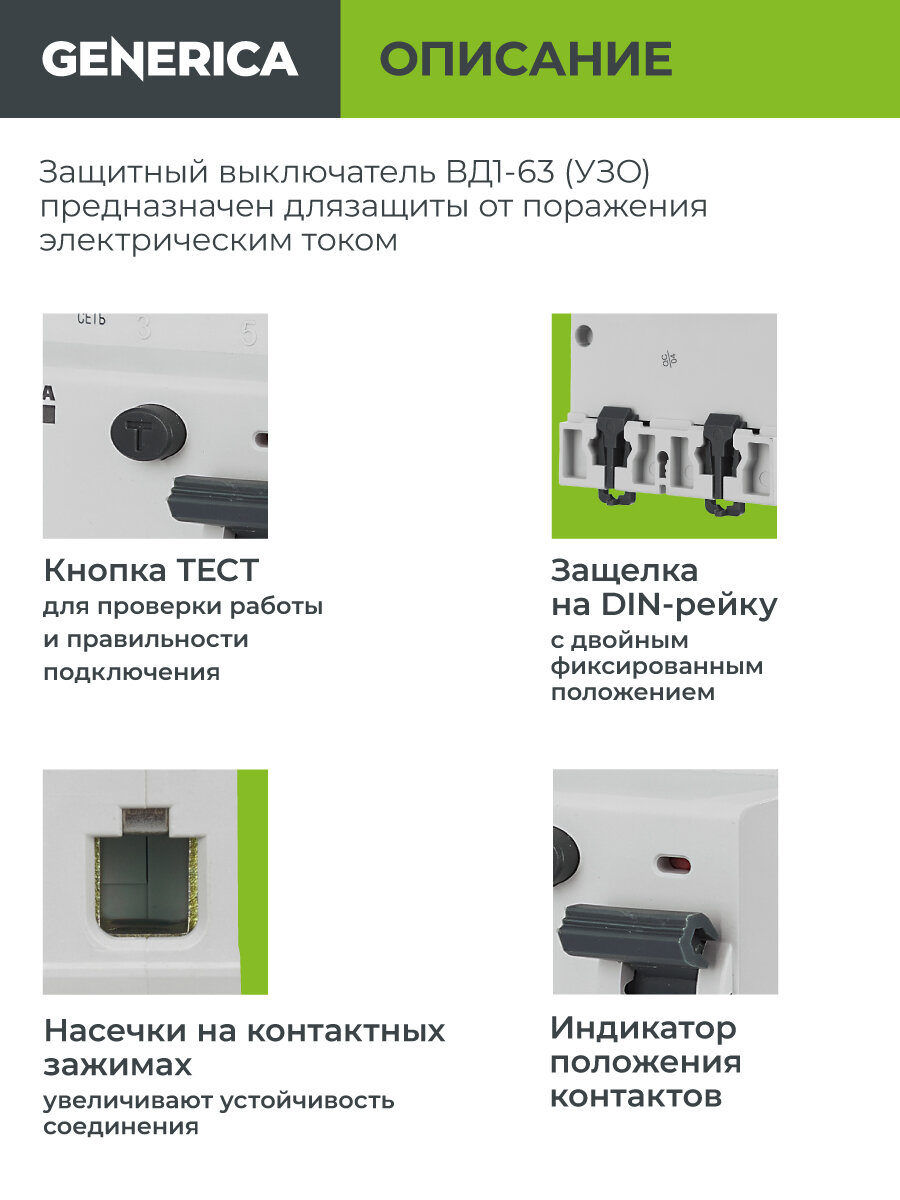 Купить УЗО выключатель дифференциальный ВД1-63 4Р 16А 30мА GENERICA с доставкой по всей России. УЗО выключатель дифференциальный ВД1-63 4Р 16А 30мА GENERICA: сравнение цен, характеристики, фото, актуальное наличие и цены.