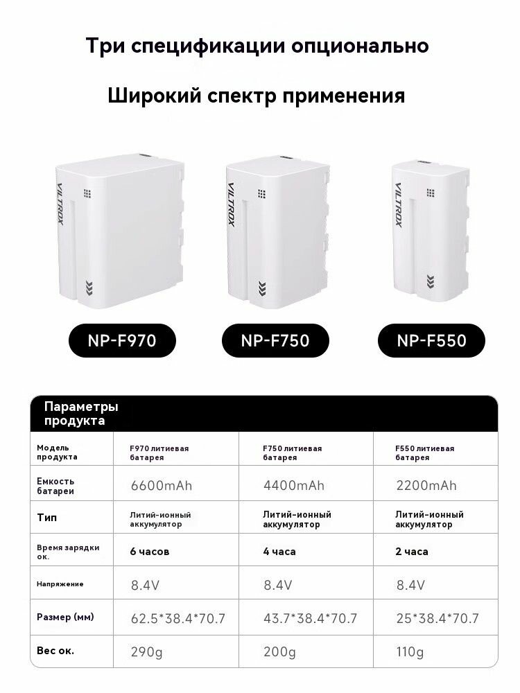 Купить V-Mount Аккумулятор c Type-C для камеры Sony / осветительного оборудования Viltrox NP-F550 X2 / NP-F550 X2 (2200mAh) с доставкой по всей России.
