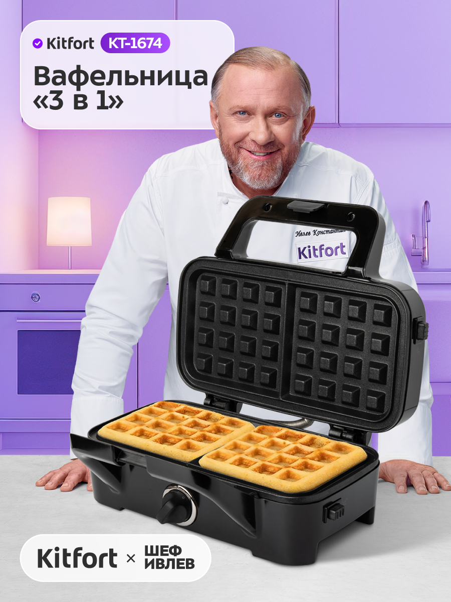 Вафельница «3 в 1» Kitfort КТ-1674: сравнение цен, характеристики, фото, актуальное наличие и цены.