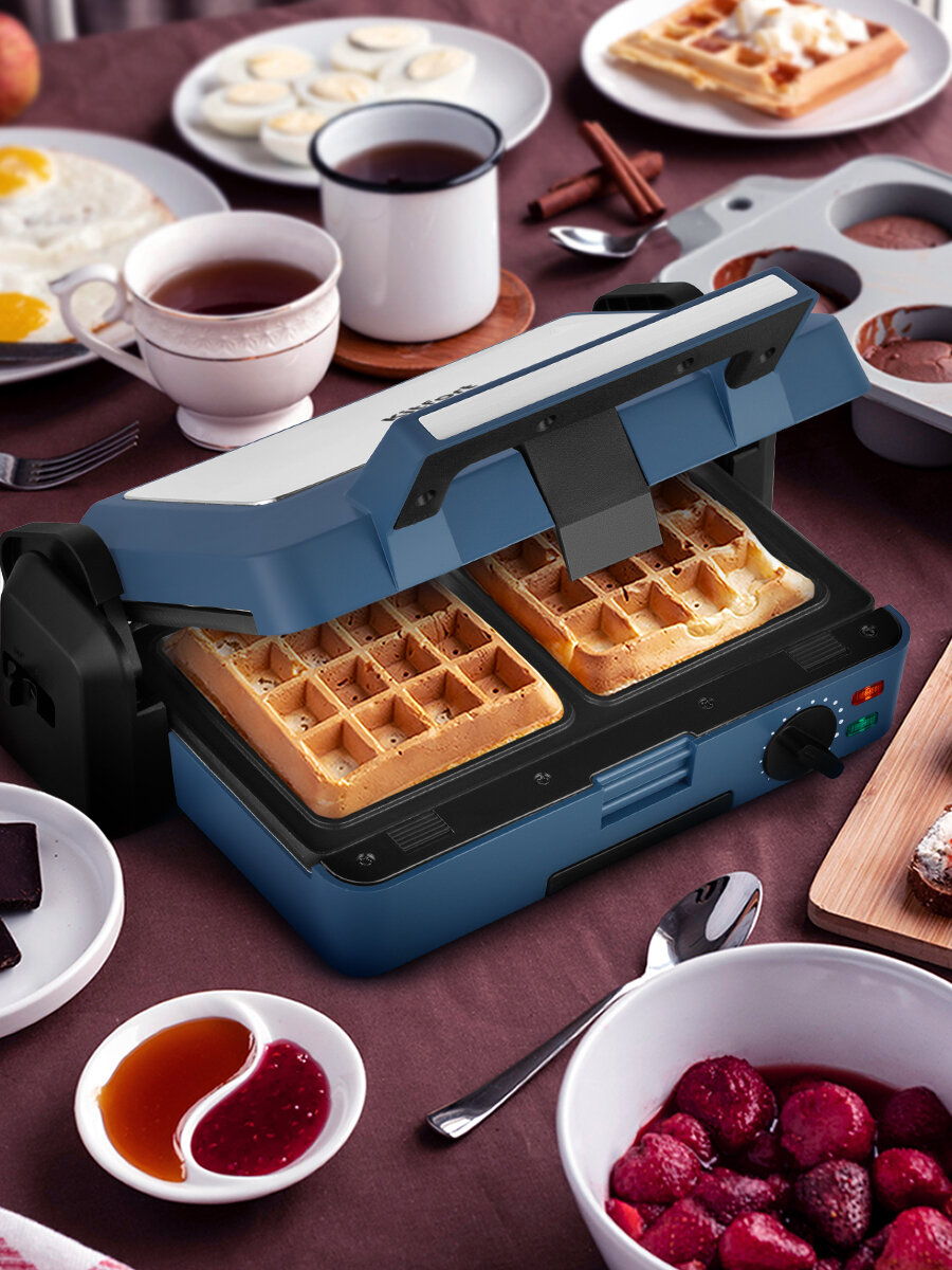 | Особенности | антипригарное покрытие, возможность смены панелей, защита от перегрева, индикатор работы, конус для рожков в комплекте, отсек для хранения шнура, сигнал об окончании приготовления |