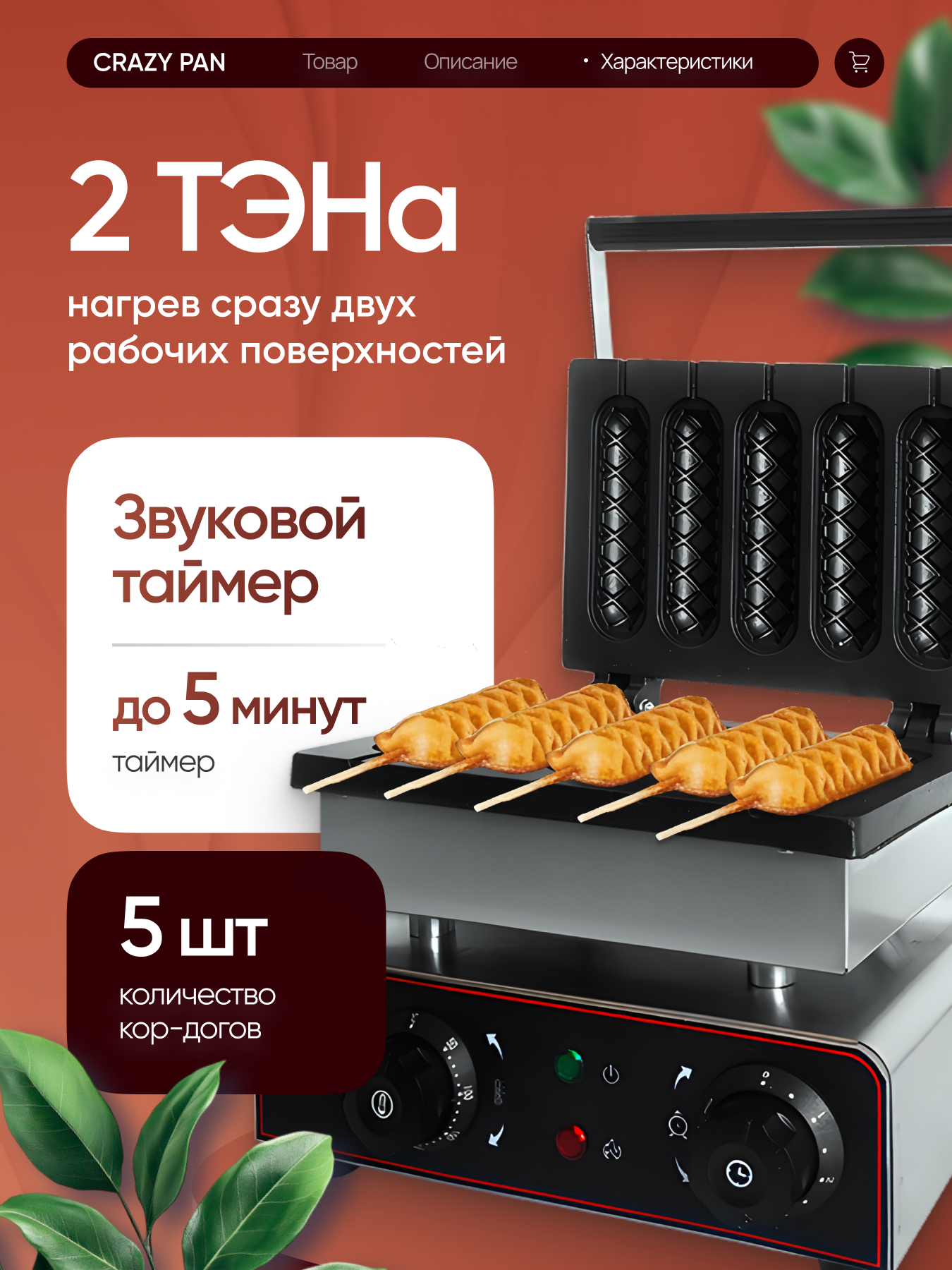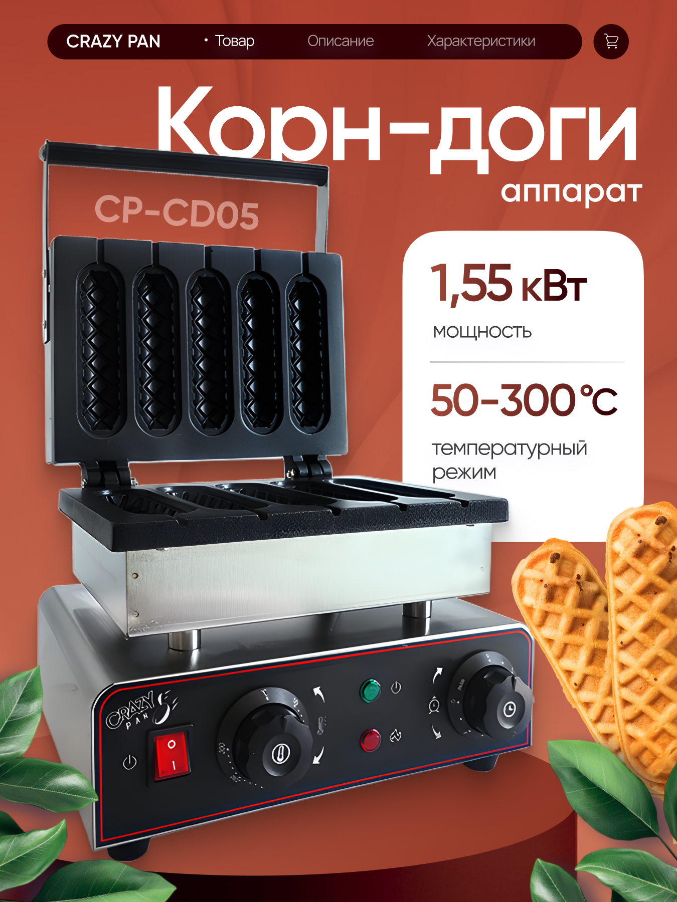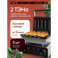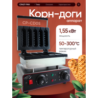 Вафельница для корн-догов Crazy Pan CP-CD05 на 5 сосисок, нержавейка, антипригарное покрытие, таймер, 1.55 кВ, 220В: сравнение цен, характеристики, фото, актуальное наличие и цены.