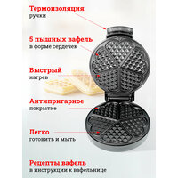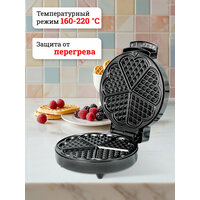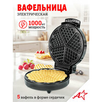 Купить Вафельница электрическая для венских и бельгийских вафель, 1000 Вт, ATH-1074 (black), панель сердечки, антипригарное покрытие, черная с доставкой по всей России.
