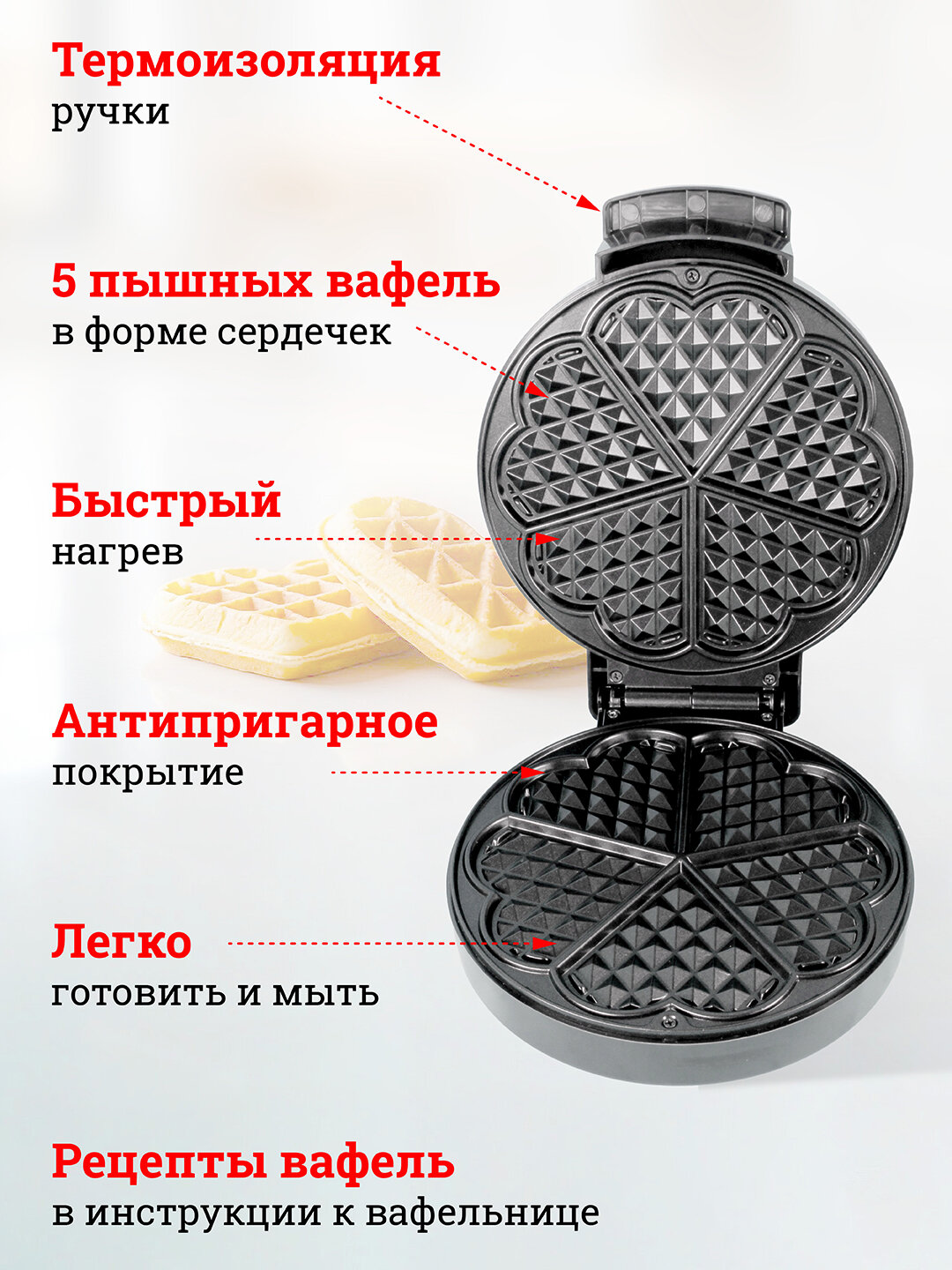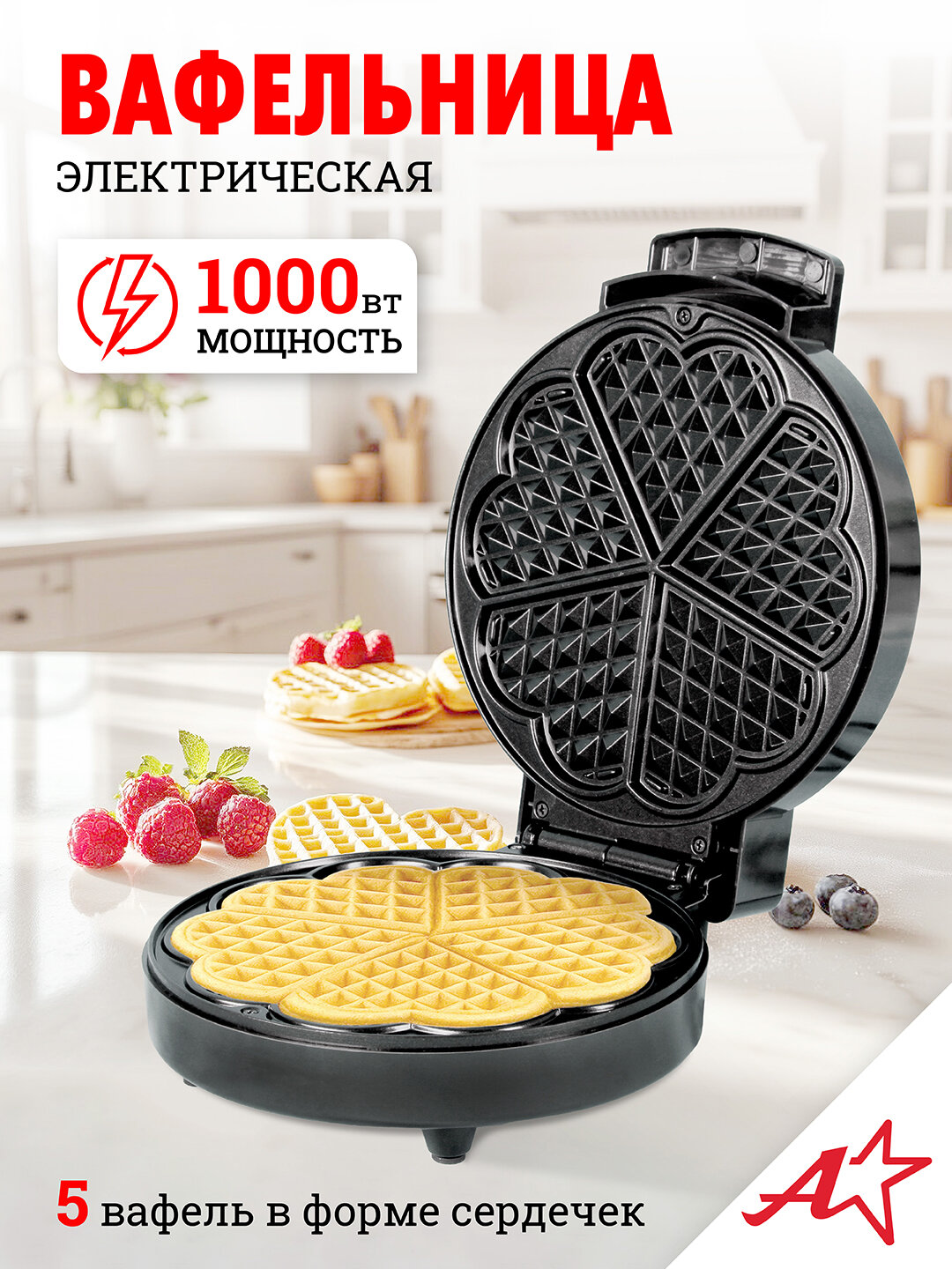 Вафельница электрическая для венских и бельгийских вафель, 1000 Вт, ATH-1074 (black), панель сердечки, антипригарное покрытие, черная: сравнение цен, характеристики, фото, актуальное наличие и цены.