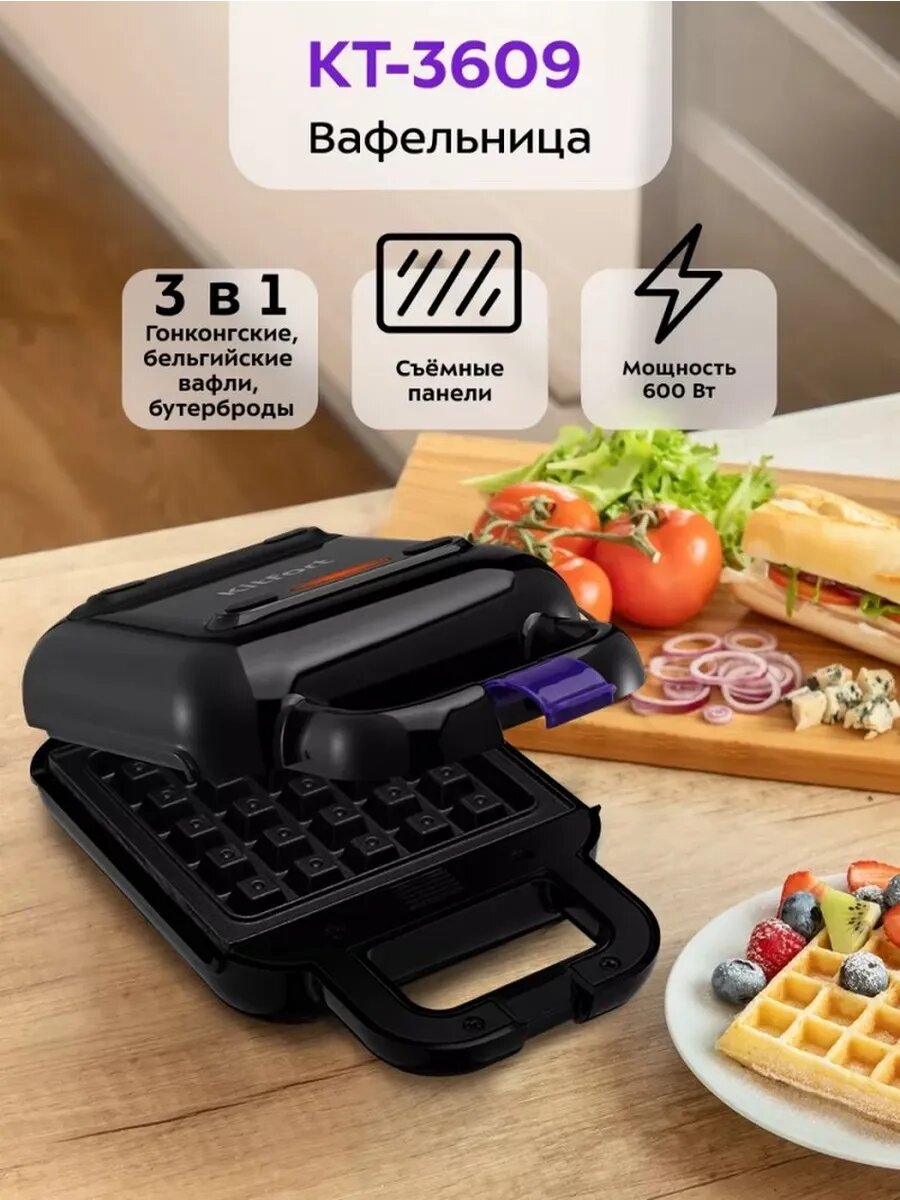 Вафельница электрическая Kitfort КТ-3609, мощность 600Вт, 3в1, для вафель и бутербродов: сравнение цен, характеристики, фото, актуальное наличие и цены.
