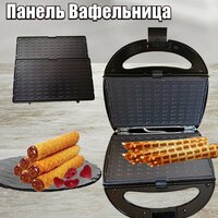 Купить Вафельница электрическая со сменными панелями: венские вафли, панель орешница, панель гриль, панель для вафель трубочек, панель тарталетки, форма для печенья и бутербродов с доставкой по всей России.