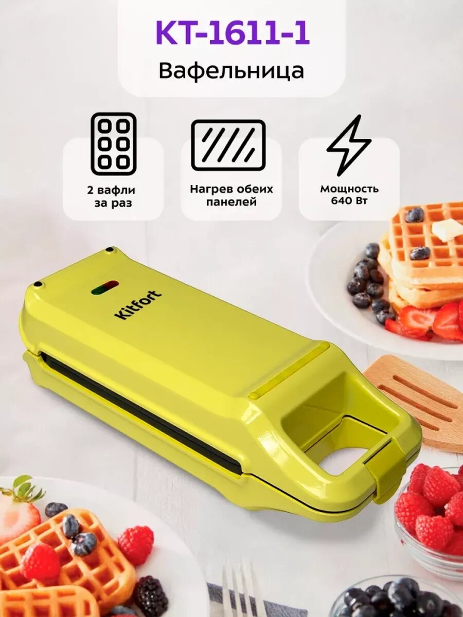 Вафельница Kitfort KT-1611, 640Вт, световые индикаторы, антипригарное покрытие: сравнение цен, характеристики, фото, актуальное наличие и цены.
