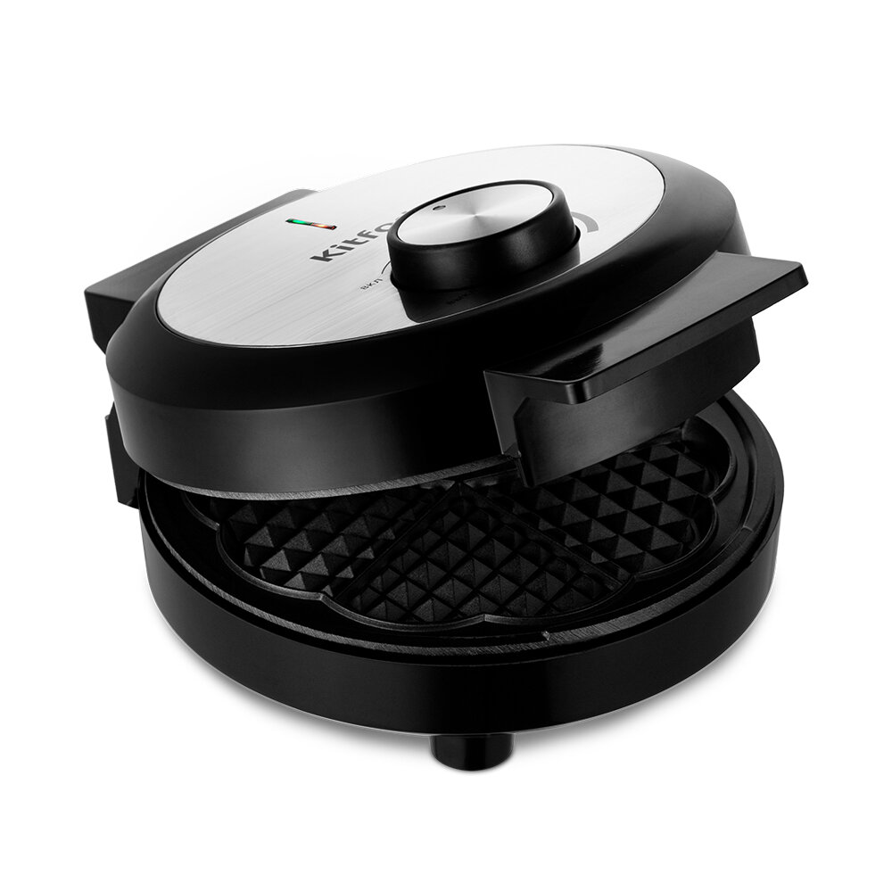 Вафельница Kitfort КТ-3616 выполнена в корпусе из пластика и нержавеющей стали. Она позволяет выпекать 5 вафель в форме сердца или 1 вафлю в форме цветка. Антипригарное покрытие панелей исключает необходимость добавления масла и не позволяет тесту прилипать. Поворотный регулятор предусматривает плавную регулировку температуры от 60 до 210°С. Для контроля состояния есть световые индикаторы. Ручка на крышке устойчива к нагреву в процессе приготовления. Термостат поддерживает установленную температуру. На основании вафельницы Kitfort КТ-3616 расположены нескользящие ножки.