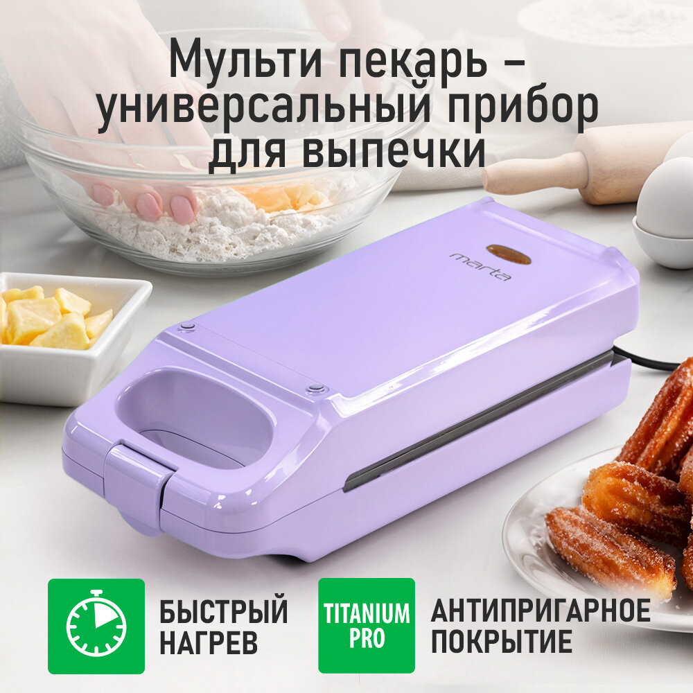 Вафельница MARTA MT-SM1741B, лиловый аметист, 1000Вт, антипригарное покрытие: сравнение цен, характеристики, фото, актуальное наличие и цены.
