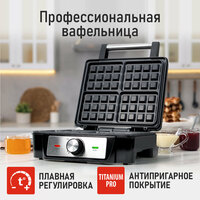 Вафельница электрическая, для бельгийских вафель, 1800 Вт, равномерный прогрев, регулировка температуры, антипригарное покрытие, 4 вафли одновременно, система защиты от перегрева, ненагревающаяся ручка, рабочая поверхность с антипригарным покрытием, световые индикаторы работы/нагрева, специальные ножки для устойчивости. Материал: пластик/нержавеющая сталь.
