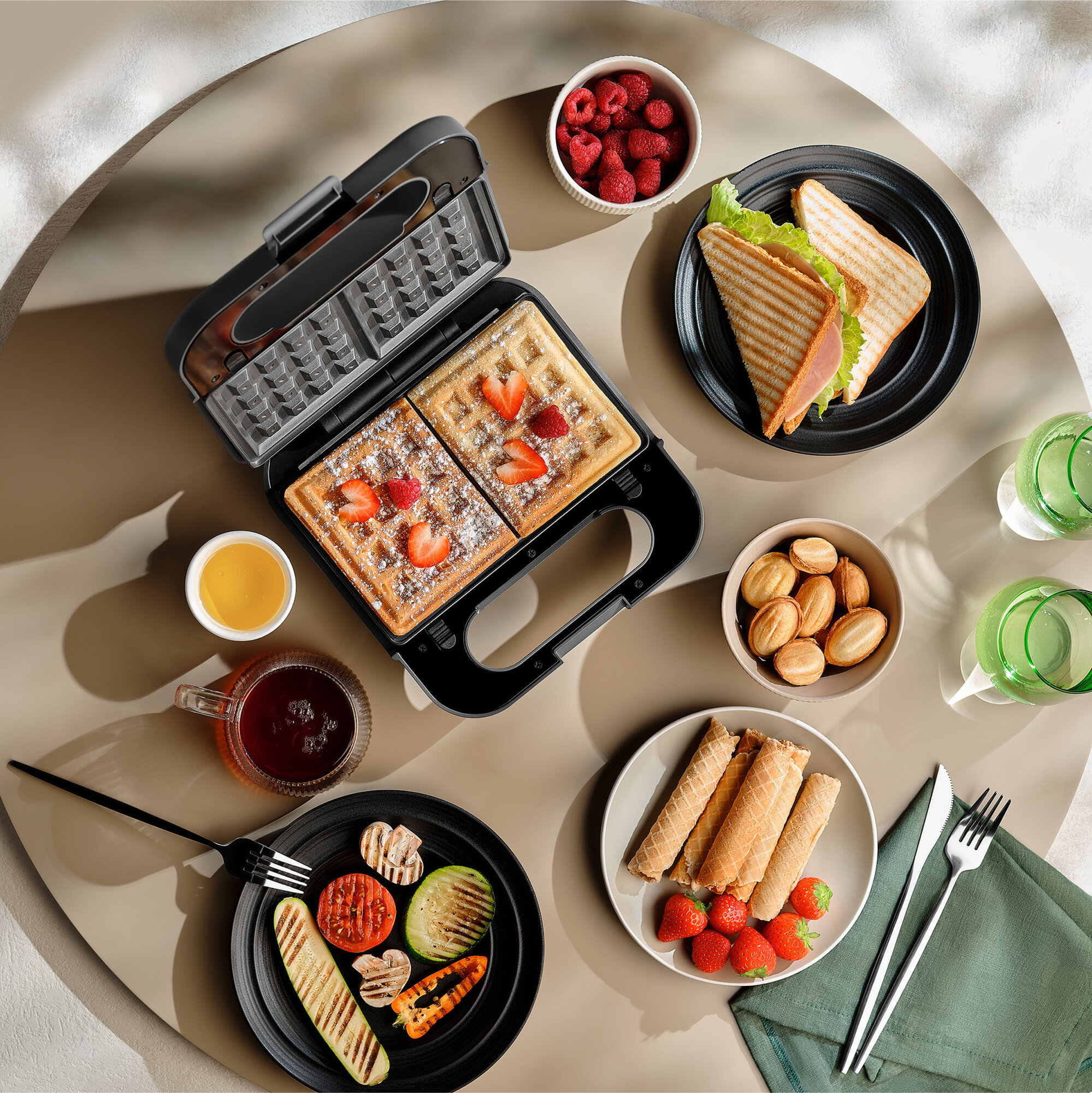 Купить Вафельница с 5 комплектами съемных панелей Tuvio TSM01, 1000 Вт, серая с доставкой по всей России. Вафельница с 5 комплектами съемных панелей Tuvio TSM01, 1000 Вт, серая: сравнение цен, характеристики, фото, актуальное наличие и цены.